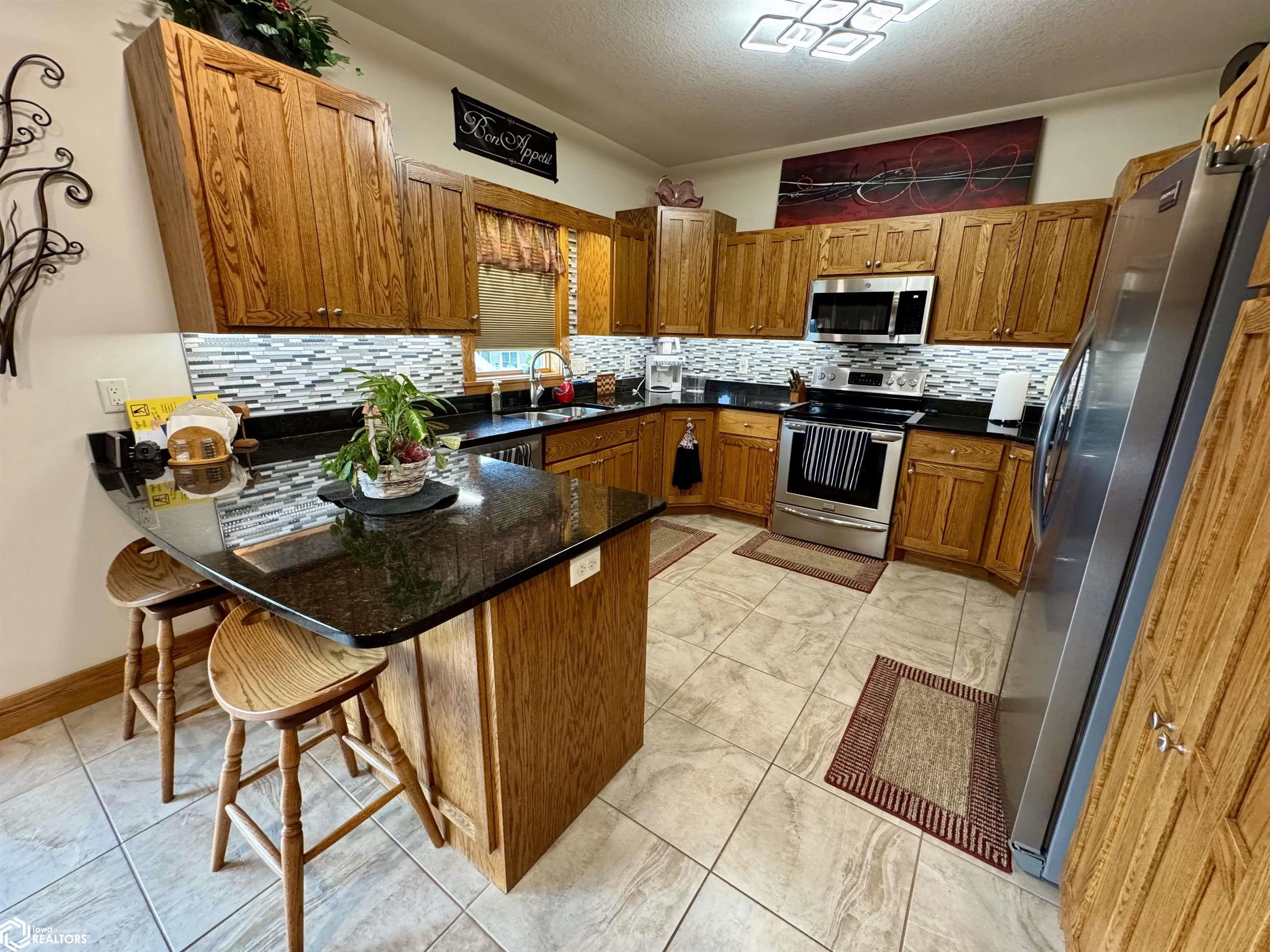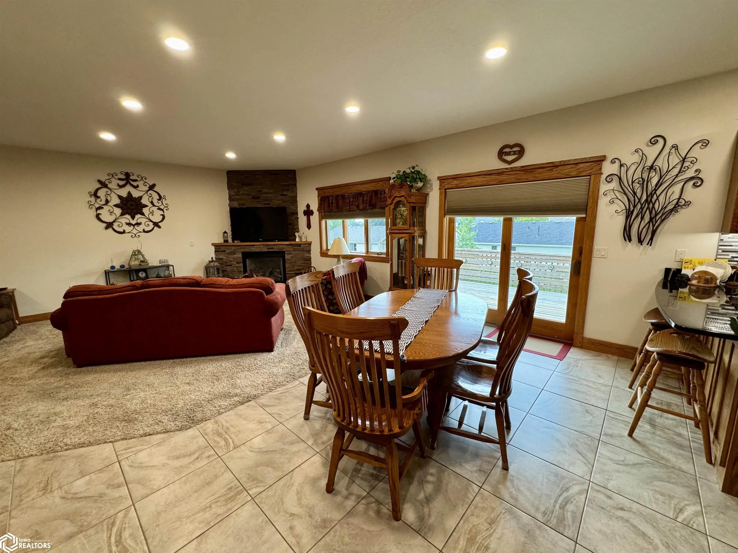 Spacious Walkout Ranch with Exceptional Features This custom 3-bedroom, 3.5-bath walkout ranch offers room to grow, with flexible space that easily accommodates additional bedrooms. Step inside and be welcomed by rich solid oak woodwork and granite countertops throughout the home, blending timeless craftsmanship with modern elegance. Enjoy year-round comfort with an extremely energy-efficient geothermal heating and cooling system. The open-concept main level flows into a beautifully finished lower level, featuring a heated/ stained concrete floor, wet bar with concrete countertops—perfect for entertaining—and direct access to a covered patio. Heated tile floors in the kitchen, dining area & primary en-suite. The oversized 3-car garage provides ample room for vehicles, tools, and toys, while the built-in backyard storage shed keeps outdoor gear organized and out of sight. A private tornado shelter adds peace of mind. Relax outdoors on the spacious deck or enjoy the privacy of the walkout patio. This thoughtfully designed home offers both luxury and livability—with quality finishes and smart efficiency at every turn.