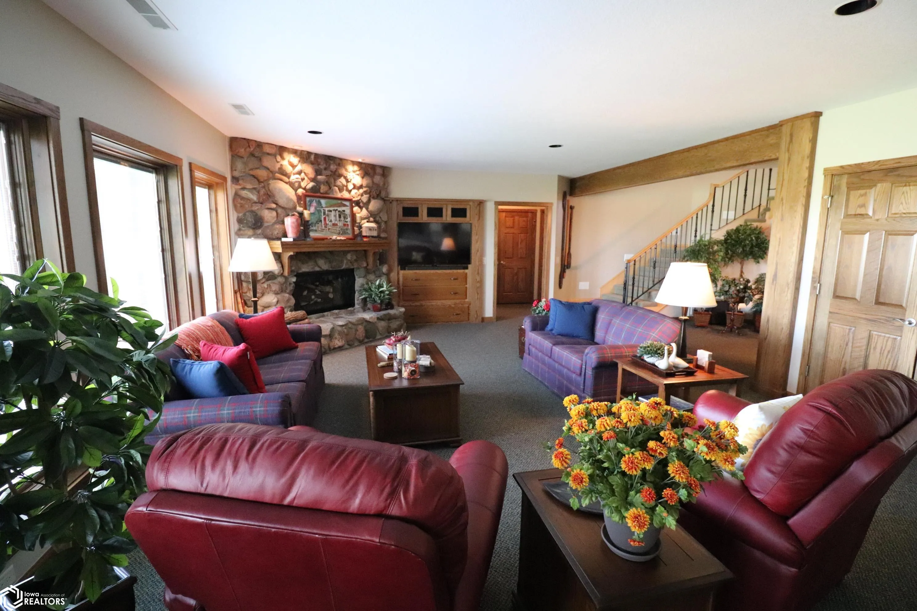 This house comes with a REDUCED RATE as low as 5.625% (APR 6.149%) as of 04/30/2025 through List & Lock™. This is a seller paid rate-buydown that reduces the buyer’s interest rate and monthly payment. Terms apply, see disclosures for more info. Exceptional walk-out brick ranch nestled at the end of a cul-de-sac amidst the mighty Burr Oaks where custom features abound and no detail is left undone. The Maple, Oak and Hickory natural woods create a warm feeling throughout the home, the beautiful natural light floods in through the bays of floor to ceiling windows. Lovely open gathering space in the great room, kitchen and dining area or step outside to the spacious covered, screened in deck. Find a peaceful retreat in the master bedroom with fireplace and private, covered and screened second deck. Full master bath features heated floors and his and hers custom designed walk-in closets with adjustable shelving. The lower level provides a family room with an Iowa stone fireplace, two bedrooms, full bath, guest 1/2 bath, custom wet bar and dining area that opens up to the patio with hookups for a hot tub. Heated floors in the living space of the lower level make sure there’s never a chill. Last but not least is the attached three car garage with over 1000 square feet, heated floors, a five year old epoxy floor, storage, clean up sink and convenient floor drains. New 50 year roof, gutters and downspouts, geothermal heating and cooling in 2023 mean no big expenses for a long time!