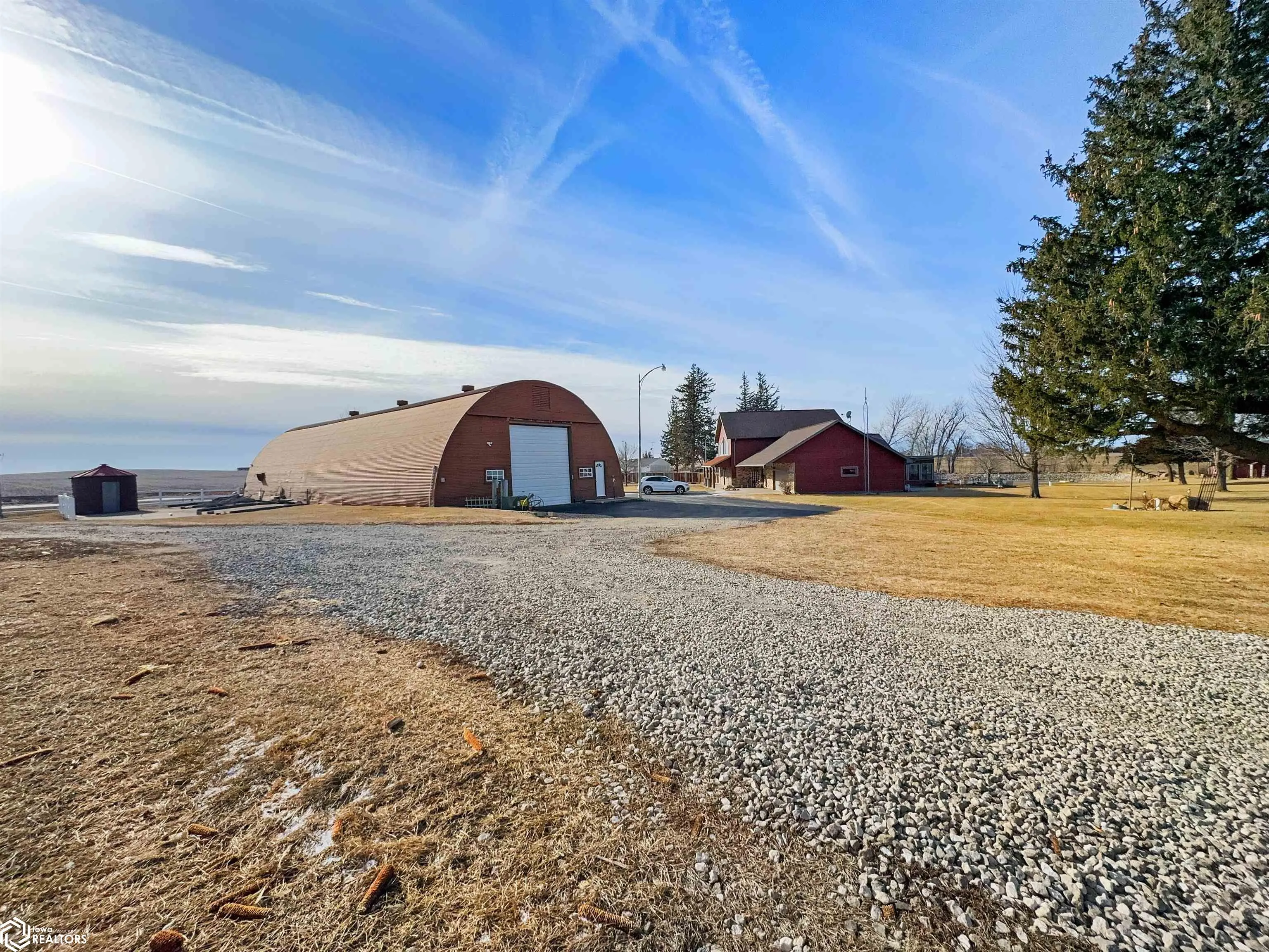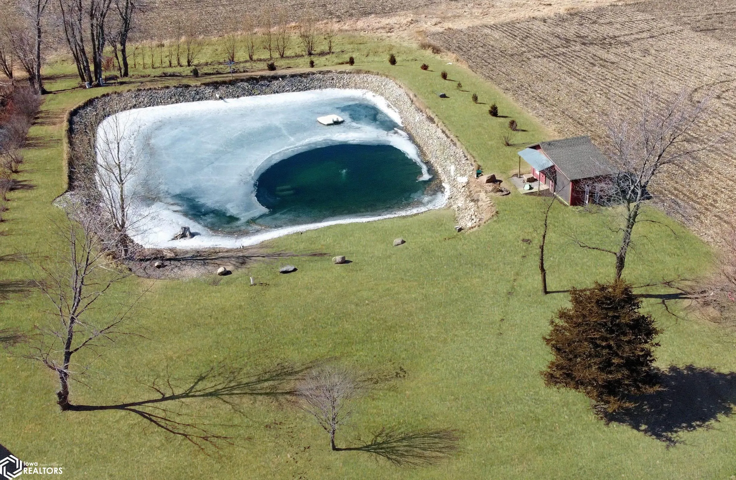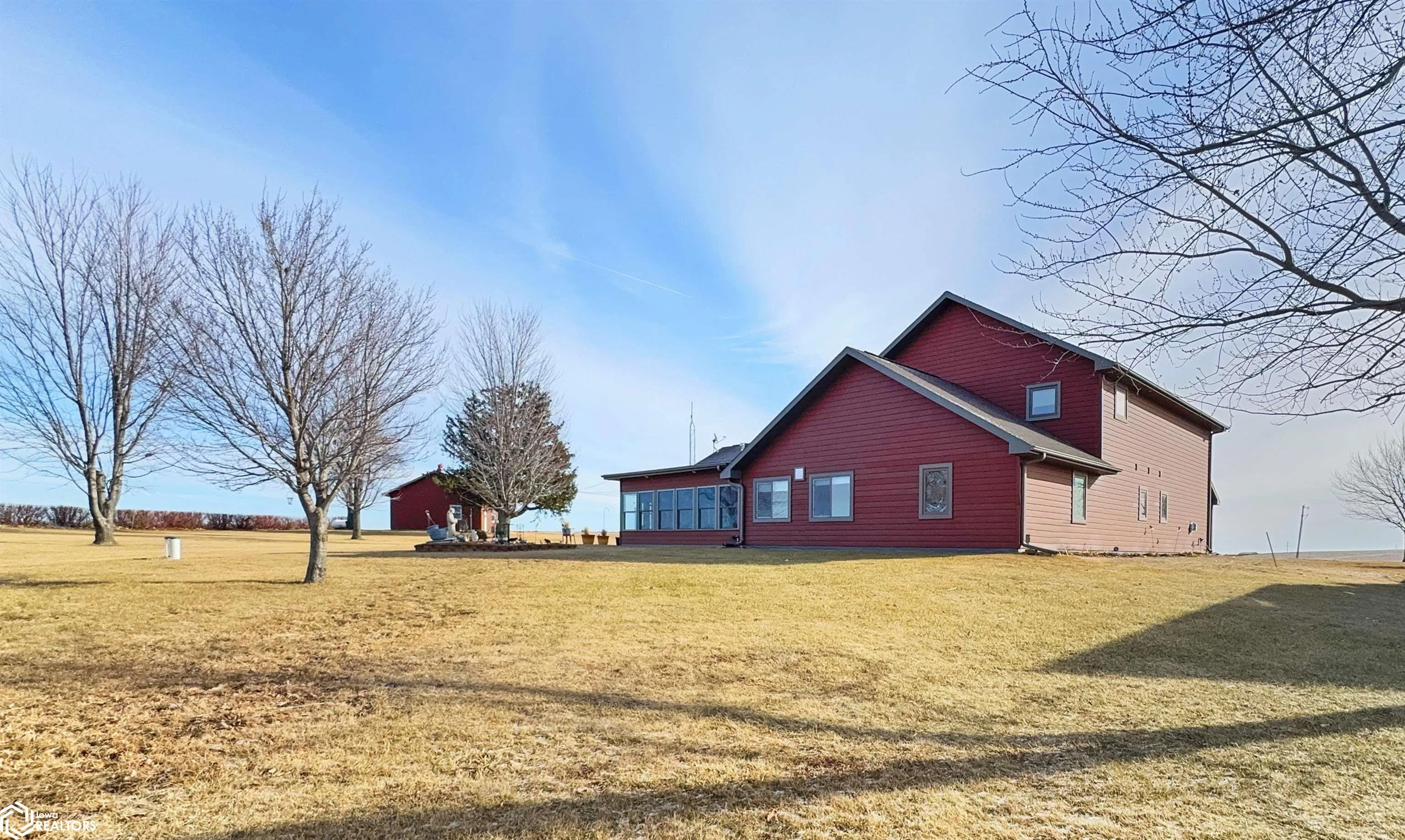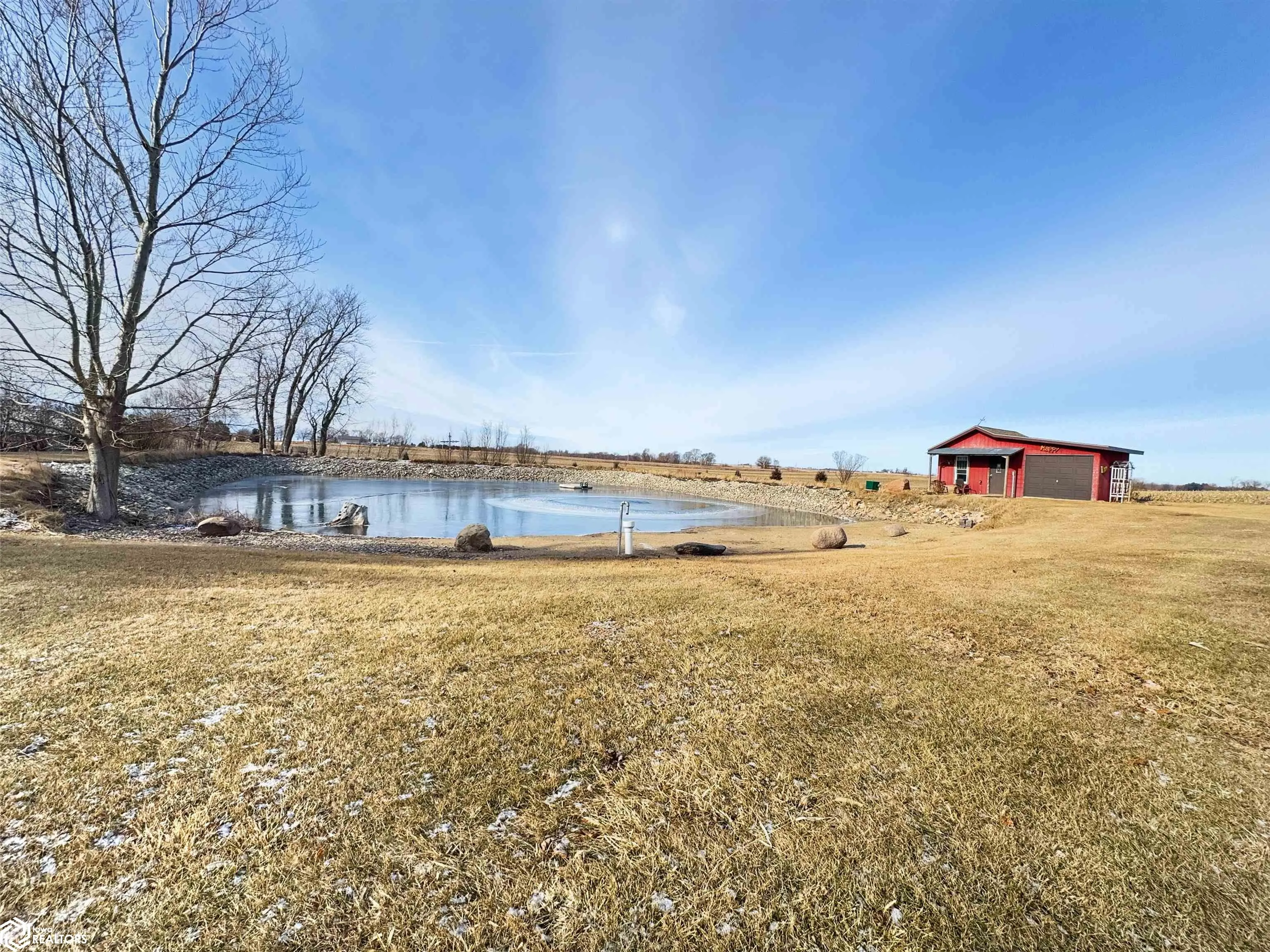 Built in 2004, this exceptional 3 BR (possible 4), 2BA home sitting on 3 acres m/l offers comfort, versatility, & unparalleled outdoor features. Situated on a paved road and just 2 minutes from town, this property has everything you need to live, work, & play. The zero-step-entry main floor features a sun-soaked living room/soaring ceilings, cozy gas fireplace, & views of the second-floor loft. The open-concept kitchen includes a breakfast bar, dining area, large pantry, & included appliances, with/convenient adjacent laundry area. The main floor also boasts a primary BR w/private bath & double closets, a serene 18×18 3-season room w/gas stove & patio access, and a 4-season room w/picturesque views of your own pond & hot tub hookups. The second floor offers two generously sized BRs w/large closets & an 8×30 loft overlooking the living area. The attached, heated 30×30 garage provides ample additional storage space. Outside, you’ll discover a stocked 1/4-acre pond, maintained by an aerator & private well for guaranteed health, complete w/pool house, beach, floating dock, & paddle boat. The 40×75 Quonset building, equipped w/concrete floor, multiple outlets, water access, & 2 overhead doors can be used for storage, hobbies, or even rented out for additional income. There is also a 24×32 heated shop with/finished office/hobby room, garage/workshop area, & built-in tornado shelter. Don’t miss this one of a kind property! This home truly has it all!