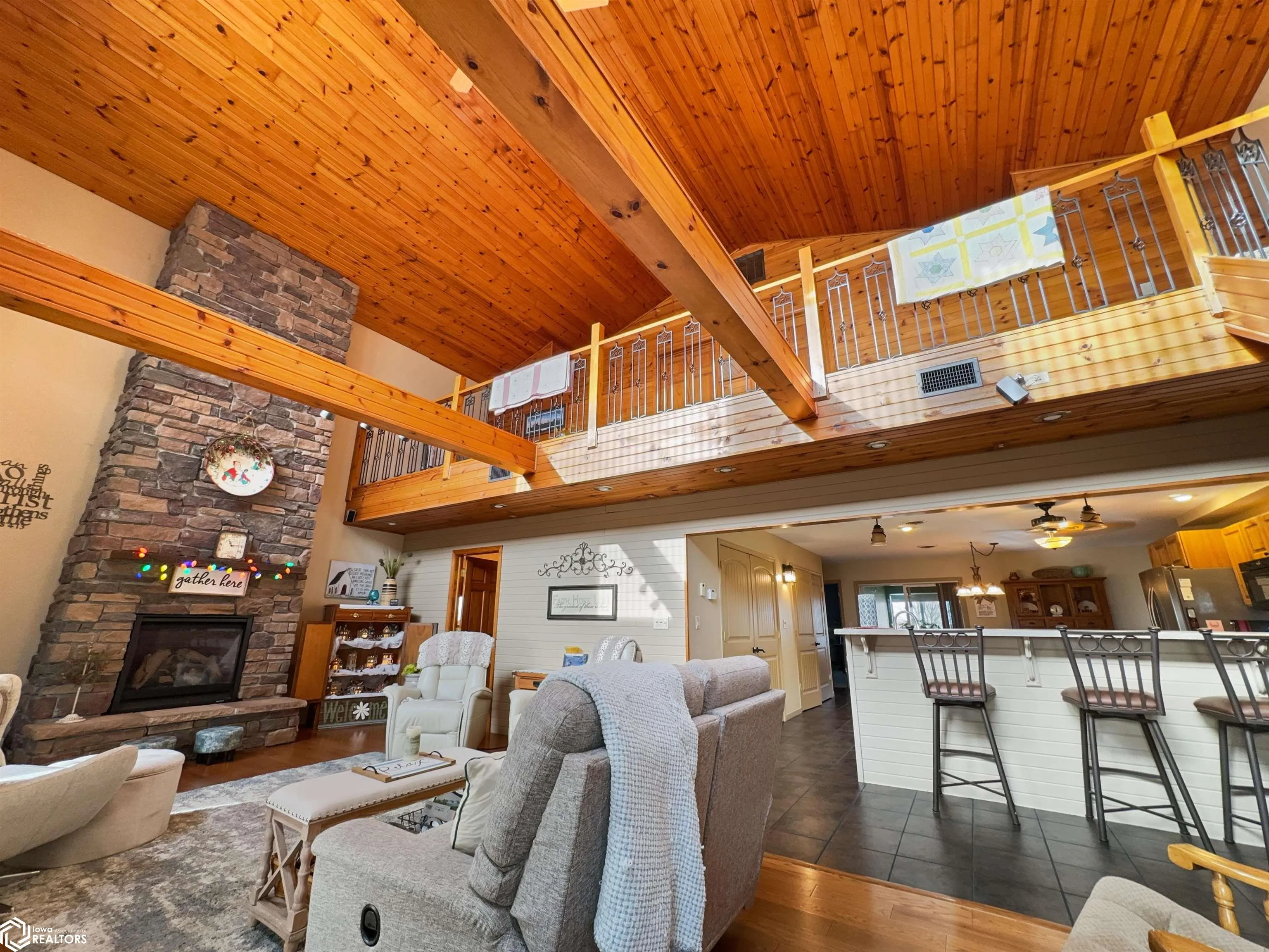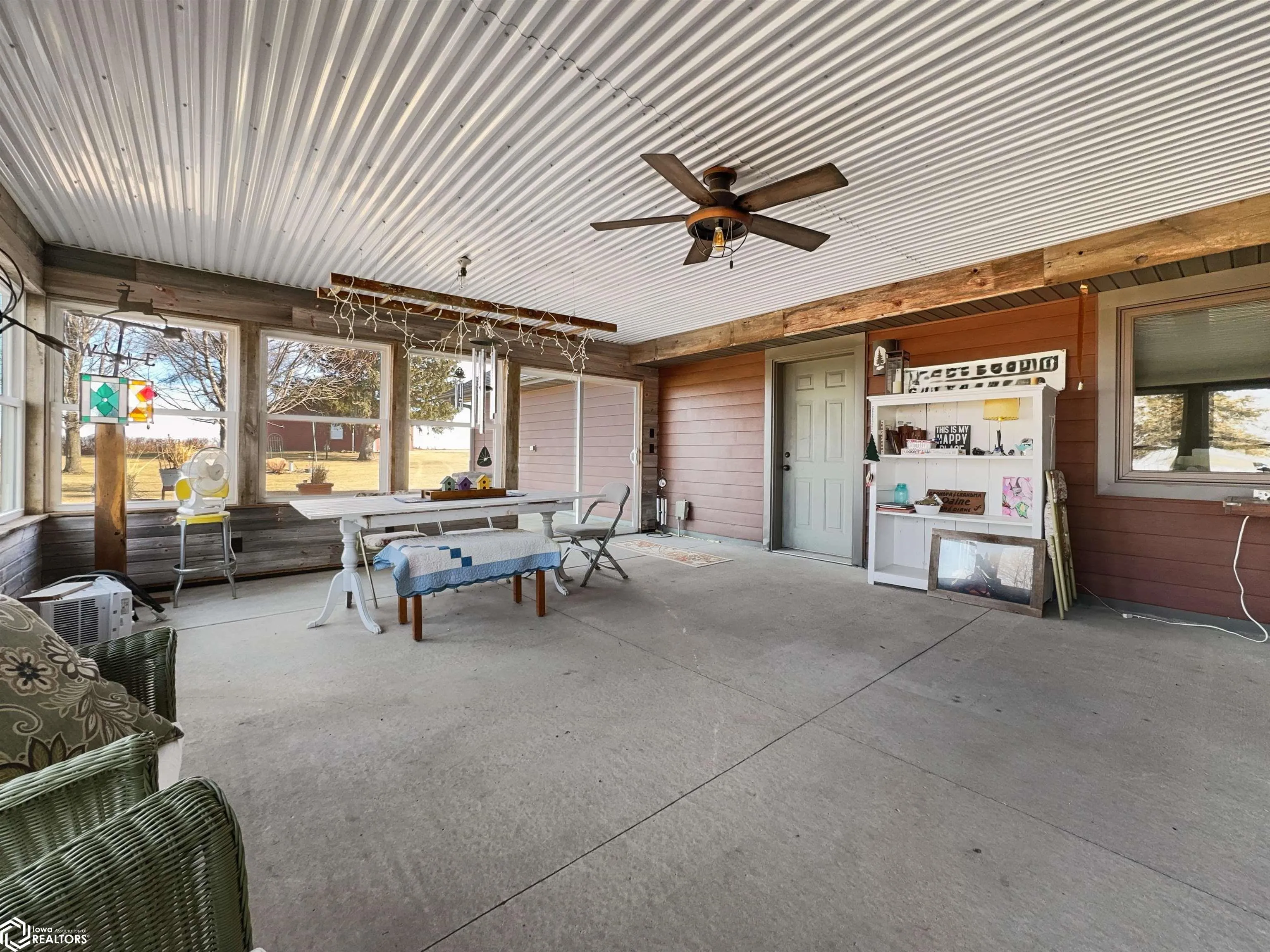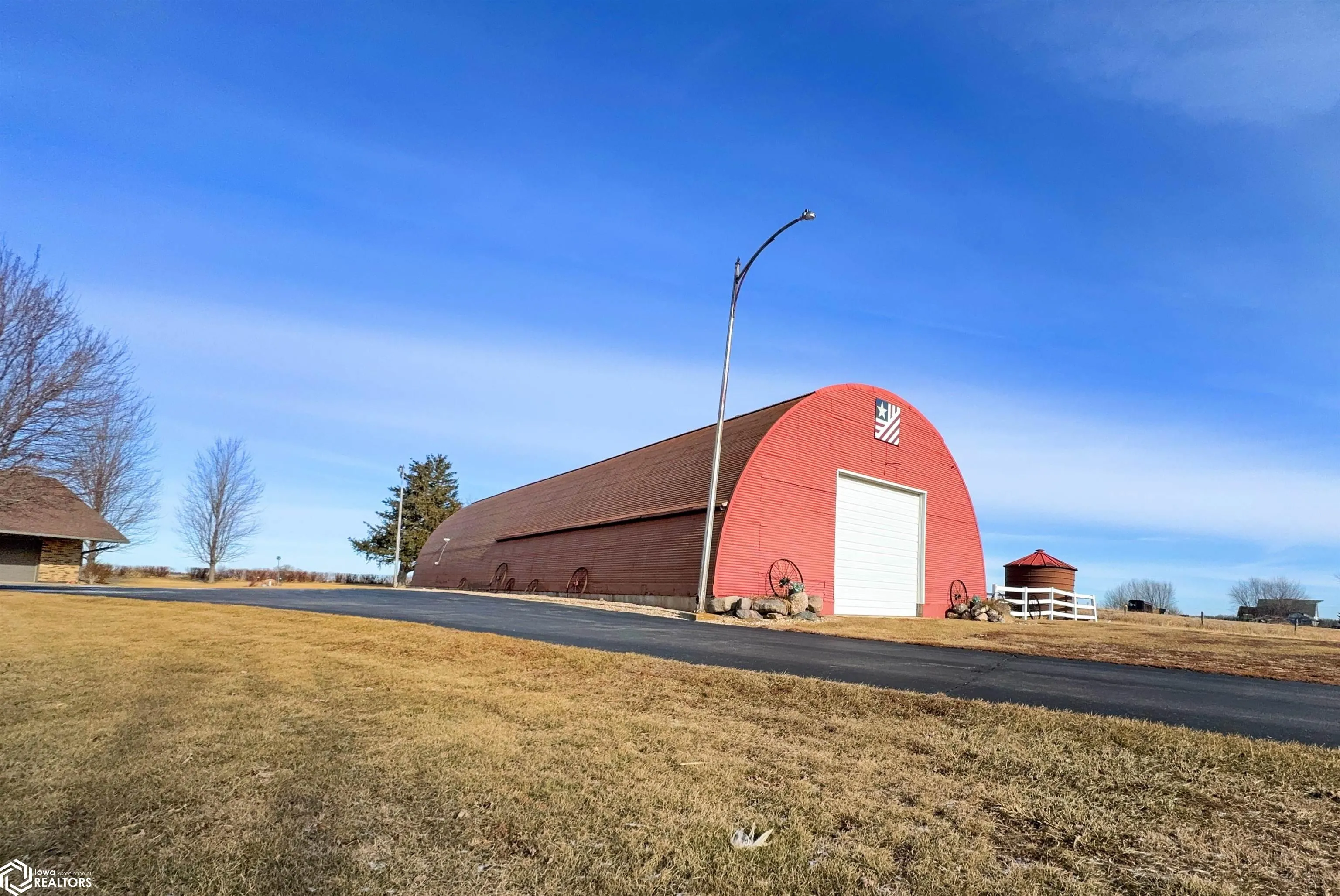 Built in 2004, this exceptional 3 BR (possible 4), 2BA home sitting on 3 acres m/l offers comfort, versatility, & unparalleled outdoor features. Situated on a paved road and just 2 minutes from town, this property has everything you need to live, work, & play. The zero-step-entry main floor features a sun-soaked living room/soaring ceilings, cozy gas fireplace, & views of the second-floor loft. The open-concept kitchen includes a breakfast bar, dining area, large pantry, & included appliances, with/convenient adjacent laundry area. The main floor also boasts a primary BR w/private bath & double closets, a serene 18×18 3-season room w/gas stove & patio access, and a 4-season room w/picturesque views of your own pond & hot tub hookups. The second floor offers two generously sized BRs w/large closets & an 8×30 loft overlooking the living area. The attached, heated 30×30 garage provides ample additional storage space. Outside, you’ll discover a stocked 1/4-acre pond, maintained by an aerator & private well for guaranteed health, complete w/pool house, beach, floating dock, & paddle boat. The 40×75 Quonset building, equipped w/concrete floor, multiple outlets, water access, & 2 overhead doors can be used for storage, hobbies, or even rented out for additional income. There is also a 24×32 heated shop with/finished office/hobby room, garage/workshop area, & built-in tornado shelter. Don’t miss this one of a kind property! This home truly has it all!