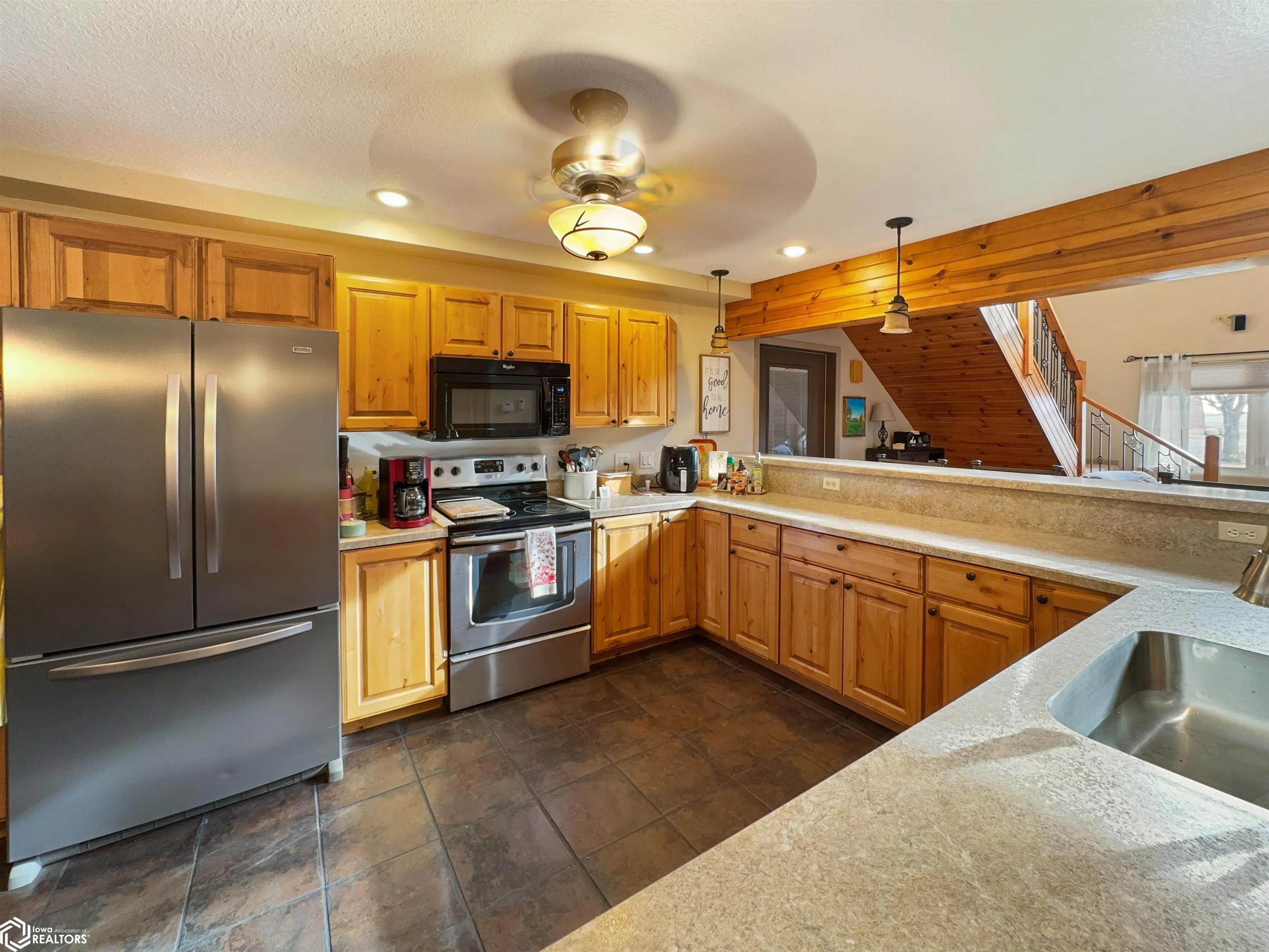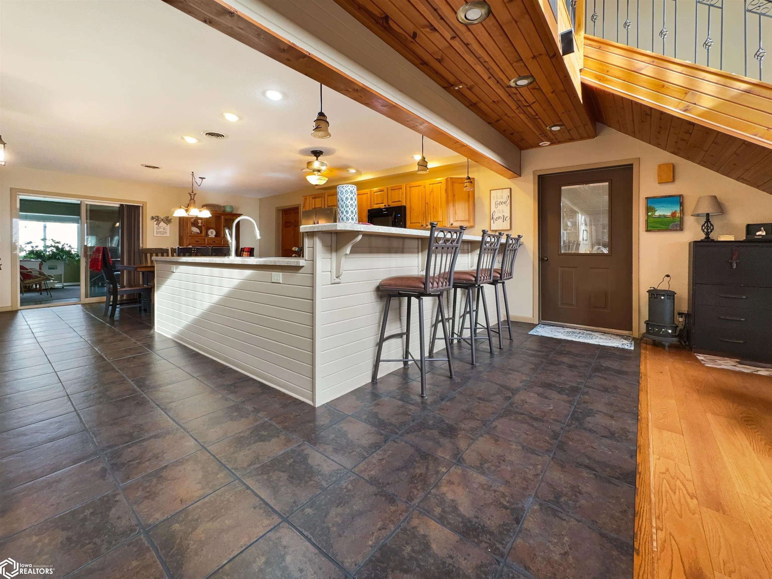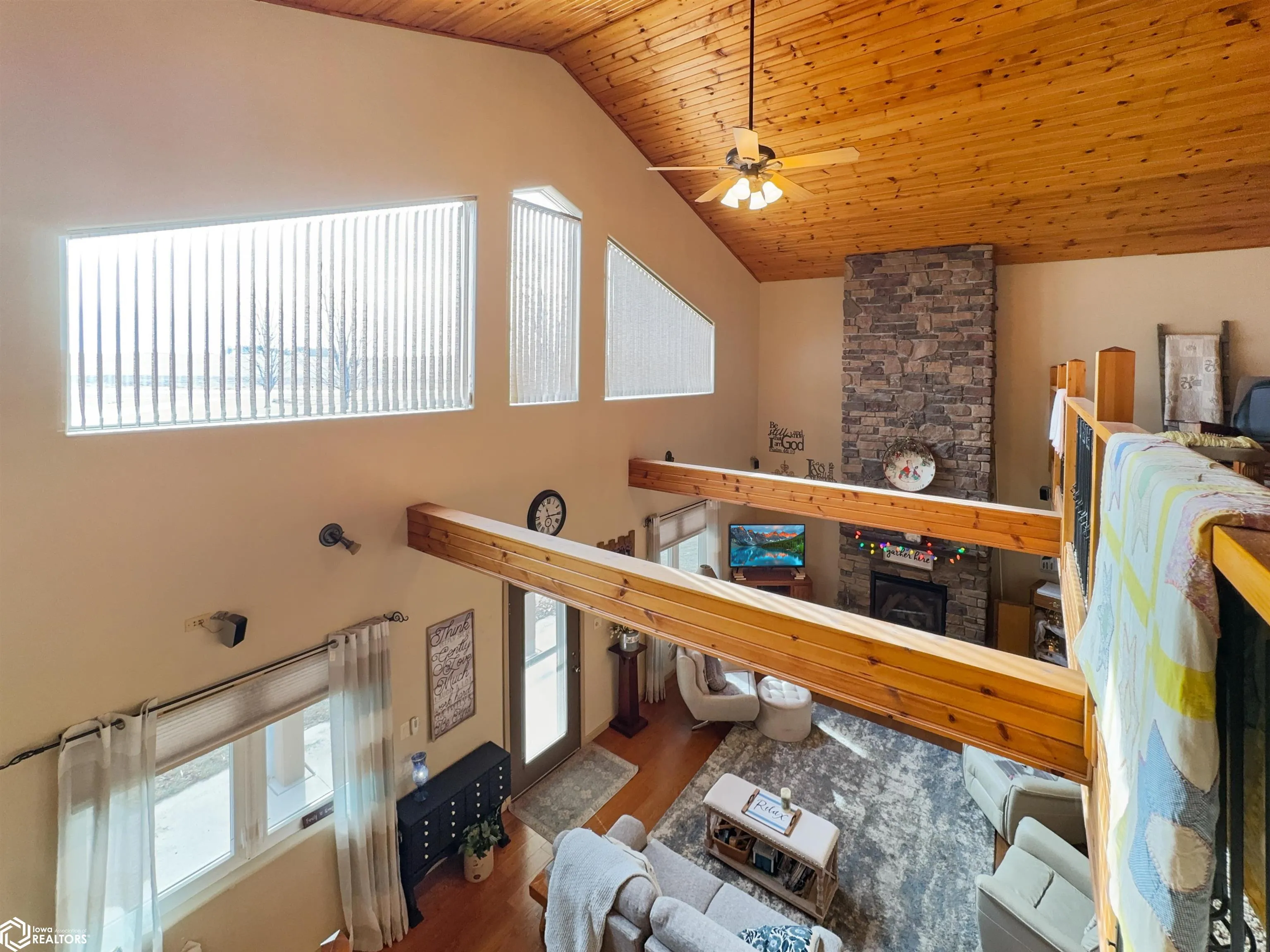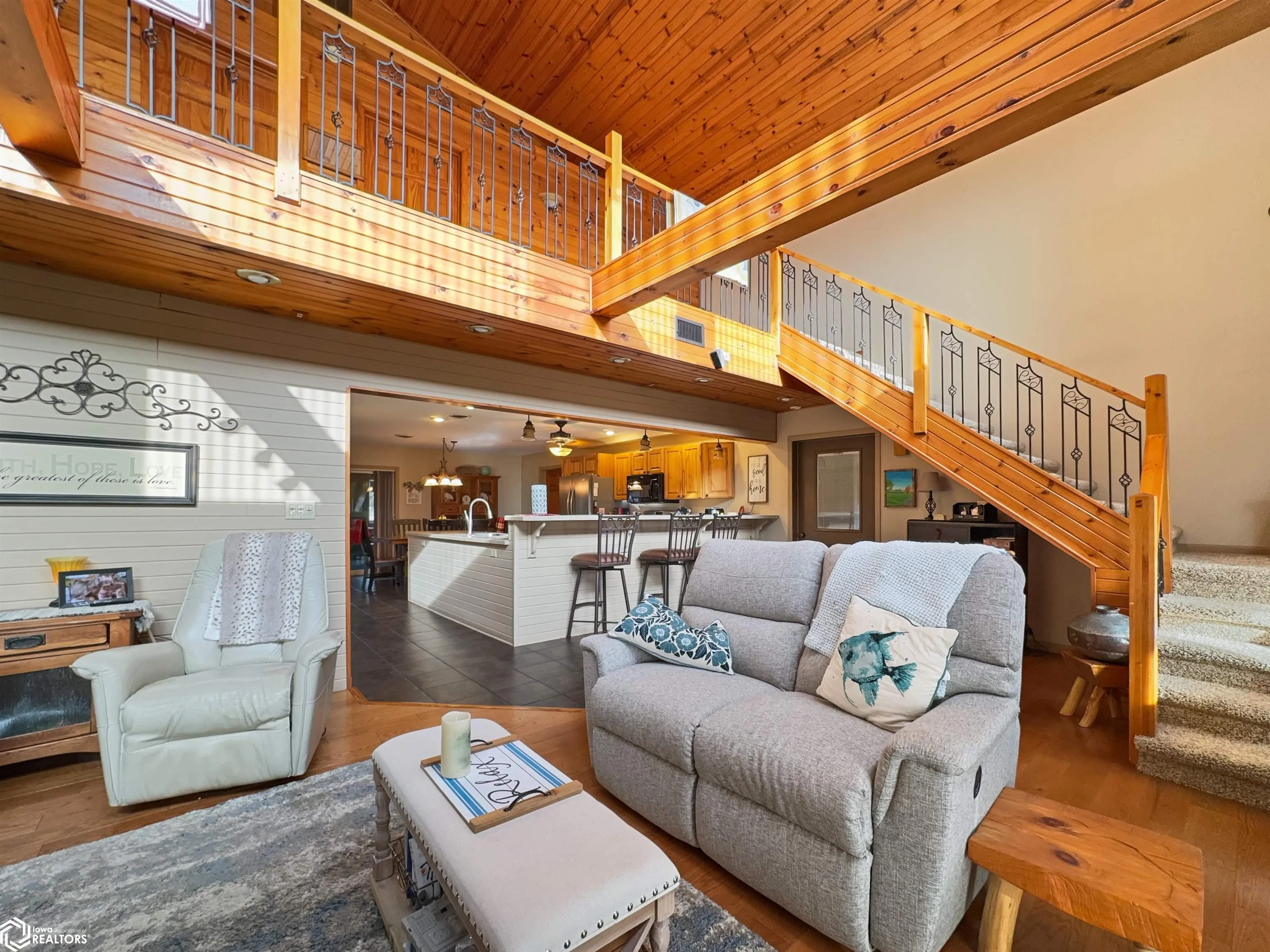 Built in 2004, this exceptional 3 BR (possible 4), 2BA home sitting on 3 acres m/l offers comfort, versatility, & unparalleled outdoor features. Situated on a paved road and just 2 minutes from town, this property has everything you need to live, work, & play. The zero-step-entry main floor features a sun-soaked living room/soaring ceilings, cozy gas fireplace, & views of the second-floor loft. The open-concept kitchen includes a breakfast bar, dining area, large pantry, & included appliances, with/convenient adjacent laundry area. The main floor also boasts a primary BR w/private bath & double closets, a serene 18×18 3-season room w/gas stove & patio access, and a 4-season room w/picturesque views of your own pond & hot tub hookups. The second floor offers two generously sized BRs w/large closets & an 8×30 loft overlooking the living area. The attached, heated 30×30 garage provides ample additional storage space. Outside, you’ll discover a stocked 1/4-acre pond, maintained by an aerator & private well for guaranteed health, complete w/pool house, beach, floating dock, & paddle boat. The 40×75 Quonset building, equipped w/concrete floor, multiple outlets, water access, & 2 overhead doors can be used for storage, hobbies, or even rented out for additional income. There is also a 24×32 heated shop with/finished office/hobby room, garage/workshop area, & built-in tornado shelter. Don’t miss this one of a kind property! This home truly has it all!