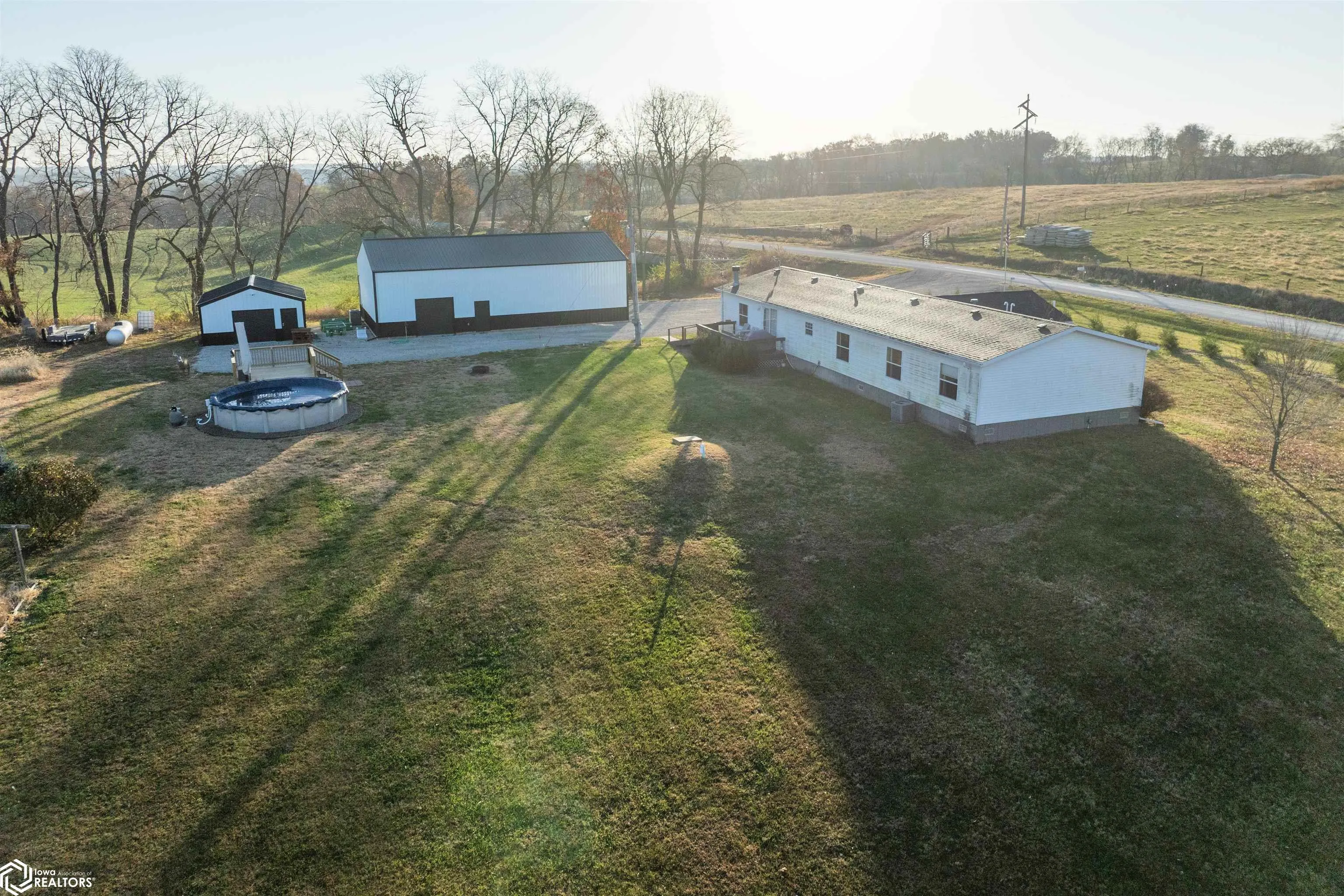 This Wapello County acreage checks every box for the buyer who wants a well-kept home, a top-tier shop, and an improved hunting property all in one package. The farm itself is a well-balanced mix of timber and tillable acres, anchored by a timber stand of multiple hardwood and bottomland species. A creek winds north to south through the property, creating a natural travel corridor that consistently funnels deer movement. The landowner has invested heavily in habitat work, including TSI, invasive species removal, and trail improvements, giving the farm a clean, healthy feel and excellent access throughout the timber. Pinch points and improved south-facing and bottom-ground bedding combine to offer a hunting setup that feels much larger than its size. Just off the east side of the timber are roughly five acres of established food plots planted in a productive mix of corn, beans, brassicas, and clover. A Banks blind overlooking one of the clover fields stays with the property and provides a comfortable hunting experience. The home is a well-maintained open-concept manufactured residence offering over 2,100 square feet, four bedrooms, and two bathrooms. Built in 2000 and recently updated with a newer roof, new septic system, upgraded landscaping, and a new 1,000-gallon propane tank, it’s move-in ready and has a warm, welcoming feel. Out back, a new 18-foot pool and deck offer the perfect spot to enjoy summer evenings.