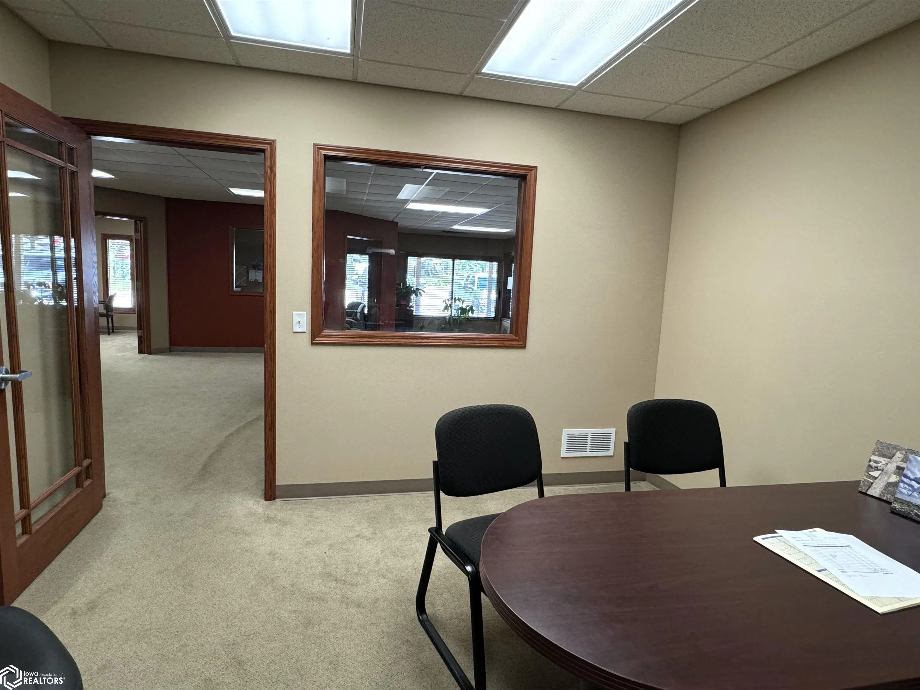 Over 3,000 Sq. Feet! This Commercial Property is located in Prime Location on corner of Russell Street and Hwy 25 – centrally located between Uptown Creston and Hwy 34. The open concept floor plan offers an over-sized central space for large gatherings or waiting room for multiple offices. Set up with Receptionist desk available to open area and (1) Large Conference Room with 10’ conference table and desk area. 1 Large Executive Office with conference area, and 4 large office with additional room for credenzas and seating. Each office has view to Open Front Area thru a window. Office copy/supply room conveniently located, Kitchenette with sink, refrigerator and seating. Storage area and Utility Rooms are located in back with exit nearby to large backyard and additional parking. Parking area in front has handicap accessibility to front door. All interior doors are handicap accessible. Ready for occupancy. New membrane roof in 2017.
