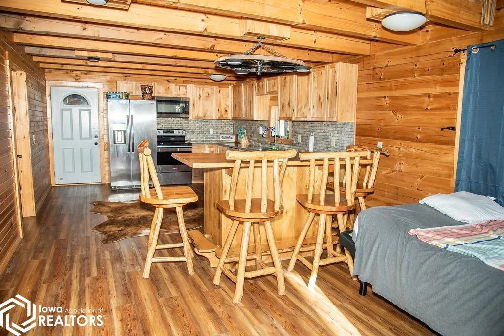 Rustic charm meets everyday convenience in this Amish-built log cabin-style home! This beautifully crafted home offers the warmth and character of log cabin living with a layout designed for comfort and functionality. Featuring 3 bedrooms and 2 bathrooms, the home includes a primary bedroom with an attached private bath on the main level, along with main level laundry. The log cabin construction showcases timeless craftsmanship and creates a cozy, welcoming atmosphere throughout. An attached 2 car garage offers additional storage space and a screened back porch is the perfect place to enjoy southern Iowa sunsets..The property is within walking distance of the local school and is just minutes away from Lake Rathbun. The one acre lot provides ample space to park your camper, boat, or other toys. Call an agent to schedule your showing today!