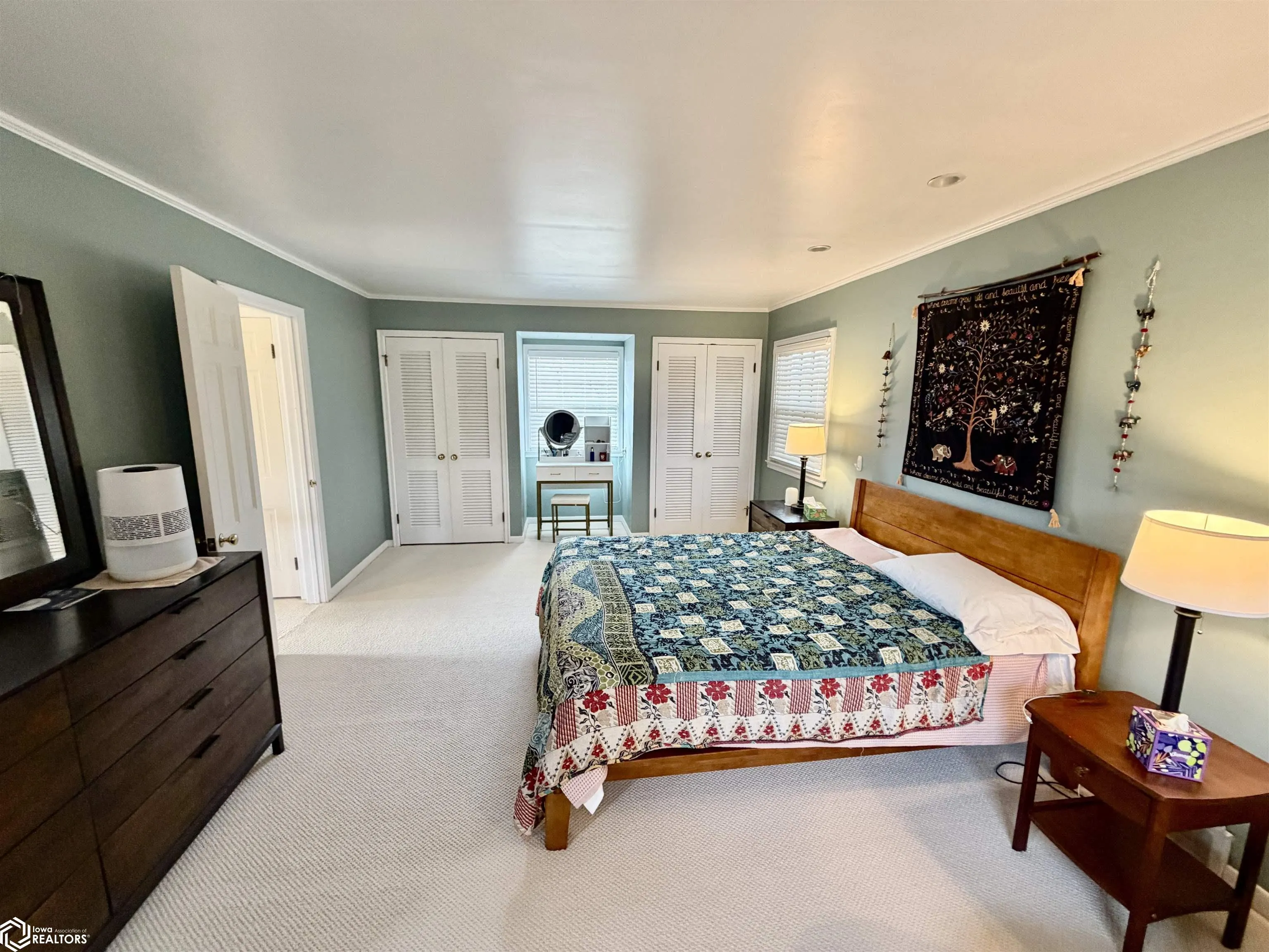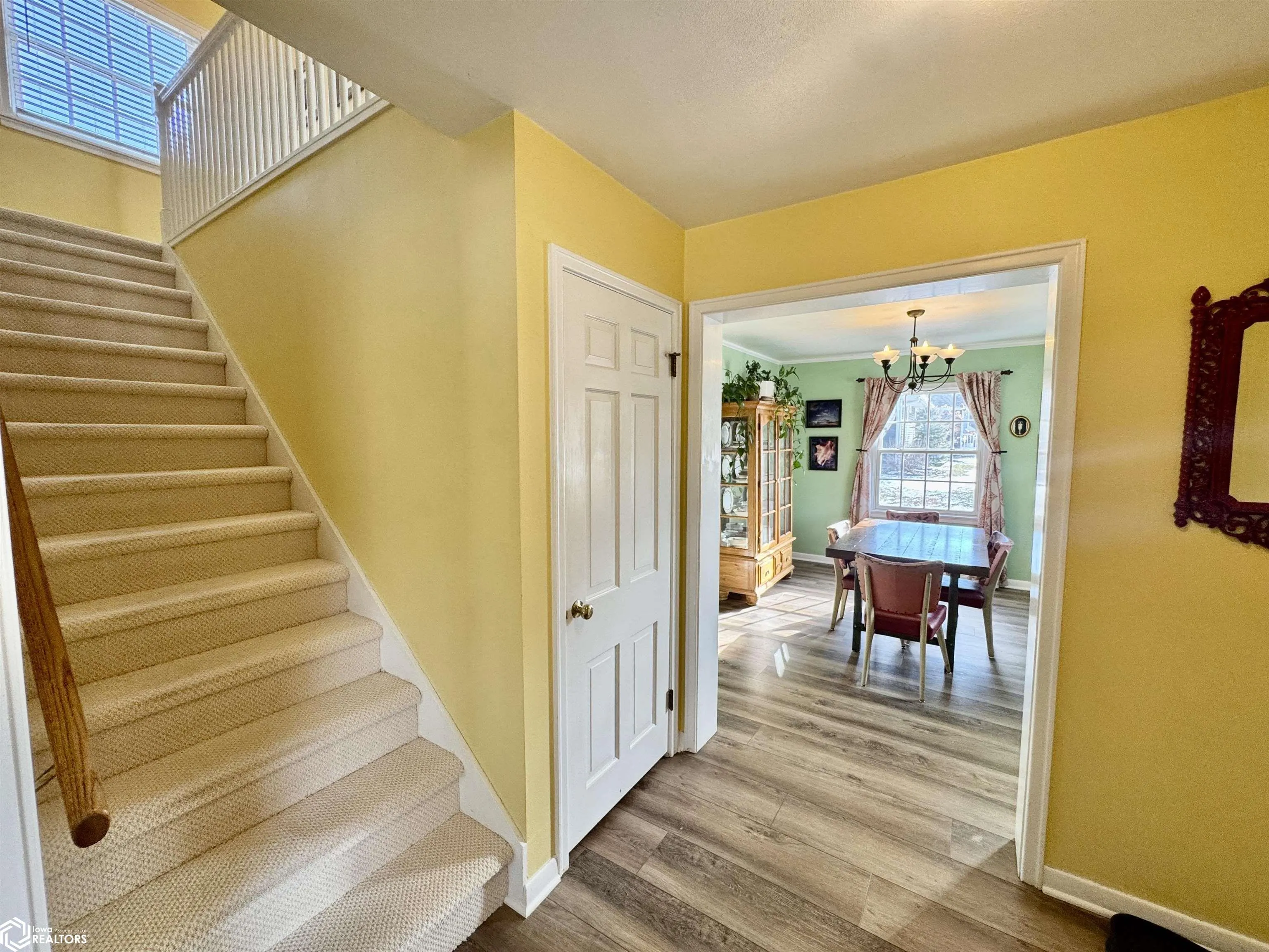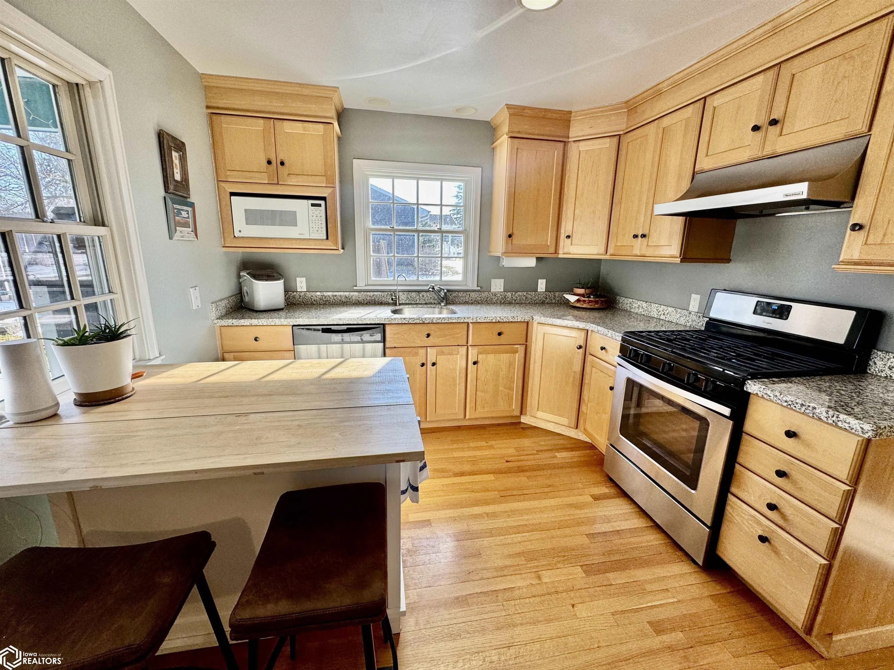 Character meets modern luxury in this meticulously maintained Dutch Colonial home located in a prime Grinnell neighborhood. From the moment you step into the welcoming foyer you will notice the thoughtful updates and high quality finishes throughout. The expansive living room features a warm brick gas fireplace with a new remote and stunning Pella Architect series windows that flood the space with natural light. On the opposite side of the foyer the formal dining room leads into a contemporary kitchen designed for the home chef boasting solid oak floors granite countertops and high end stainless steel appliances. A private main floor office offers comfort with custom radiant heated porcelain tile floors and tranquil views of the backyard. Upstairs the extra large primary bedroom provides ample space for a sitting area while the recently remodeled full bath showcases beautiful wood floors and a granite vanity. Recent capital improvements provide peace of mind for years to come including a newer roof furnace water heater and a fully painted exterior. Modern luxury vinyl tile was installed across the main level in 2024 with fresh carpeting upstairs. Outside the carefully landscaped yard serves as a private oasis featuring a spacious covered patio and a composite fence. The detached two car garage includes a newer door and opener with convenient alley access via a concrete driveway. Experience the perfect blend of timeless style and contemporary efficiency. Make your appointment!