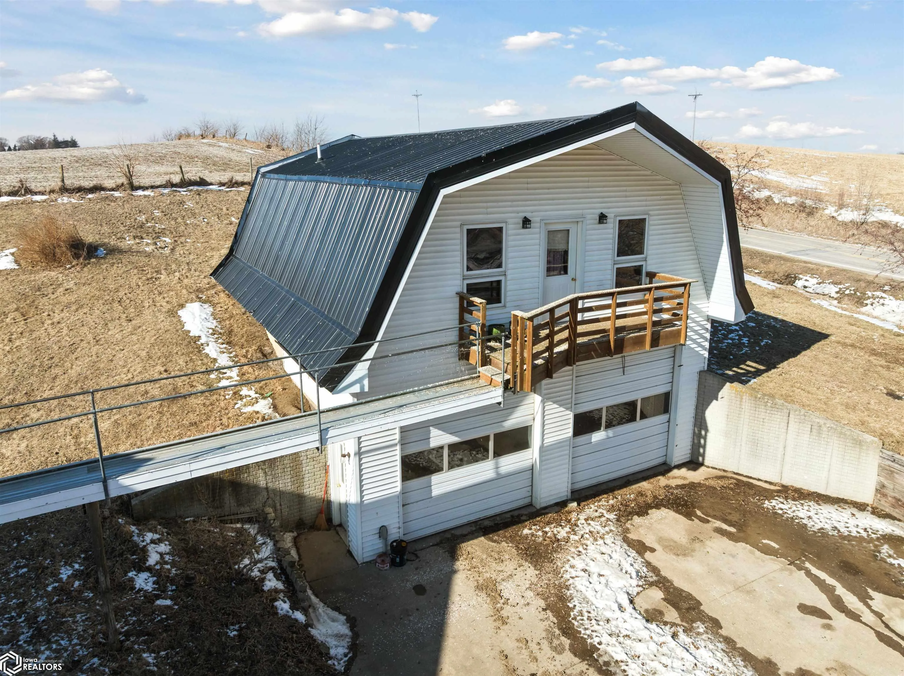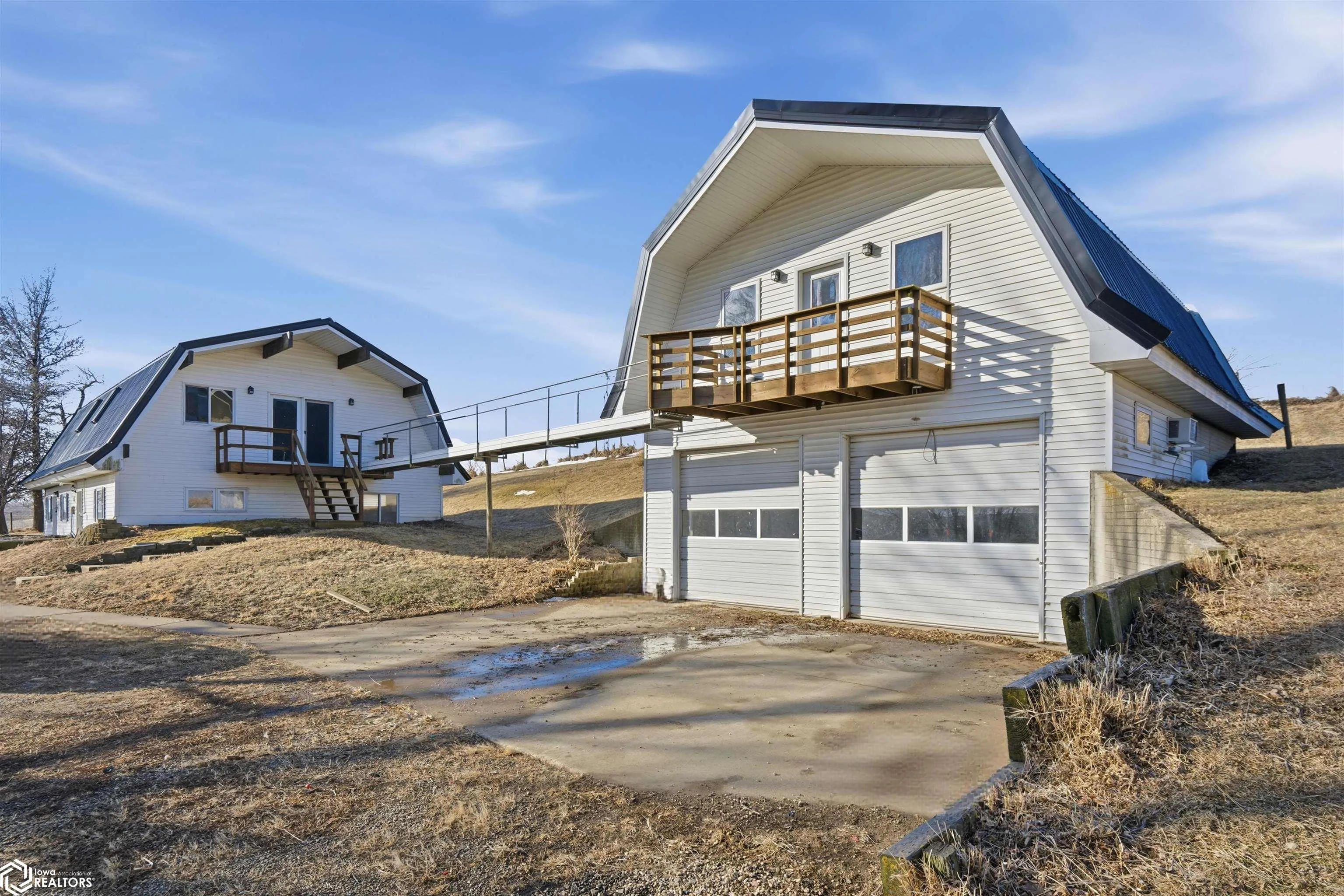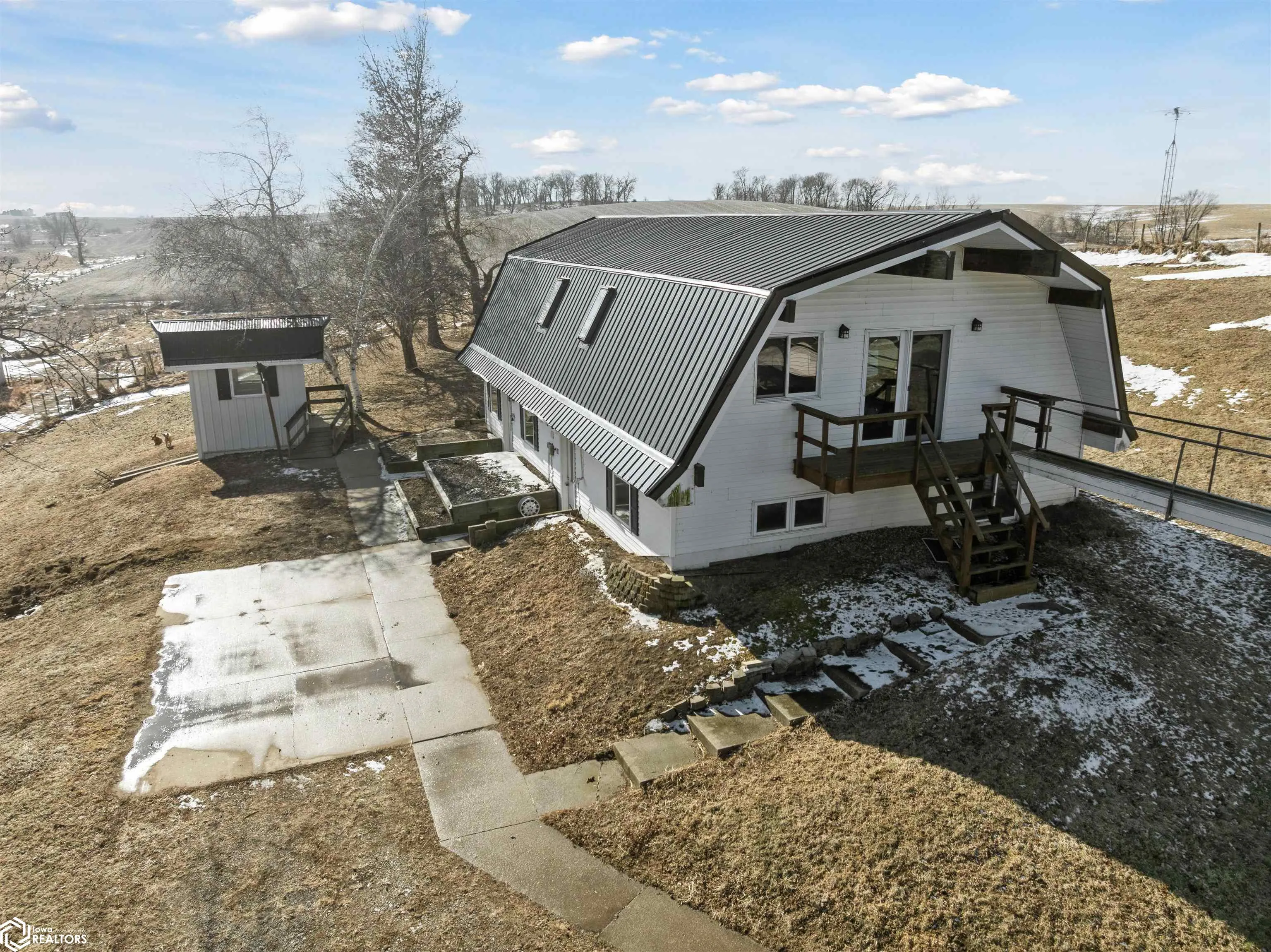 Dreaming of country views with room to spread out without giving up convenience? This unique acreage on approximately 4–5 acres along a hard-surfaced road just outside Marshalltown delivers the best of both worlds! Inside, you’ll find 3 bedrooms, including 2 on the main level plus a spacious loft suite with its own private bathroom. The living room is a showstopper, featuring southern-exposed picture windows that frame peaceful countryside views and flood the space with natural light. The property truly shines with its incredible garage and bonus living space. Above the oversized garage is a heated and cooled loft complete with a ¾ bath and kitchenette — ideal for guests, extended family, hobbies, or flexible-use space. An accessible entrance at the rear adds even more versatility. The loft space is connected to the main home’s upper level by a unique jet bridge. If you’ve been looking for privacy, views, and multi-purpose living space all in one property, this one is a rare find.