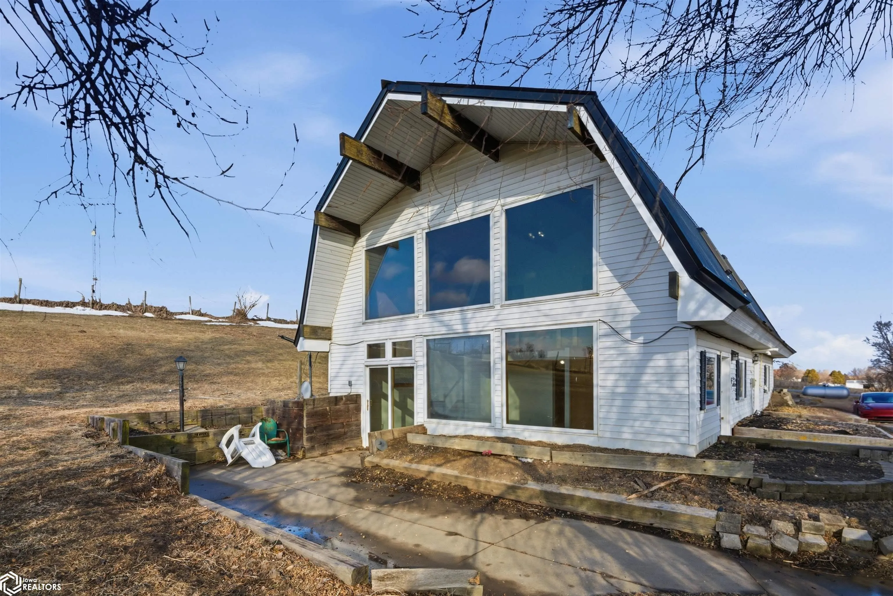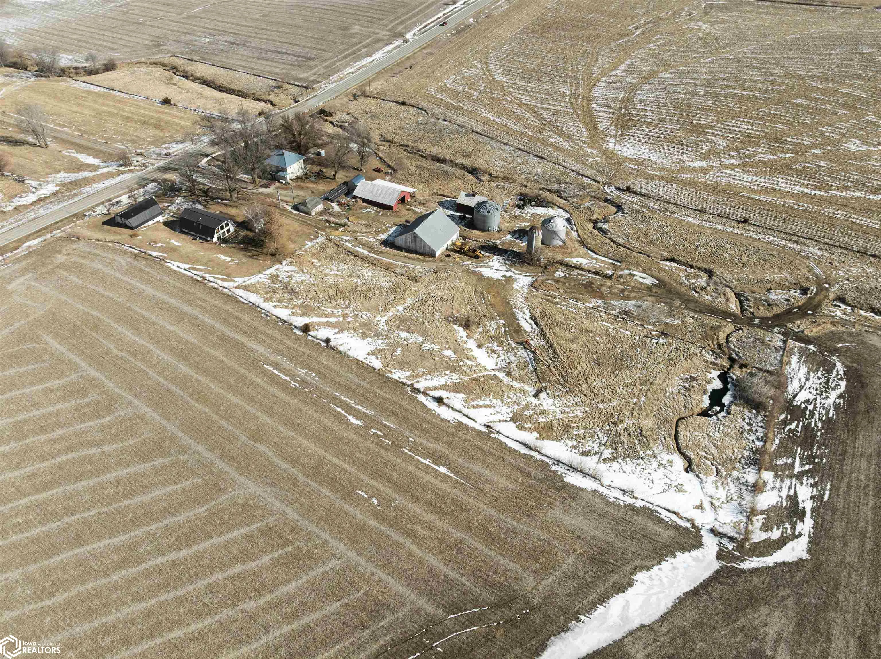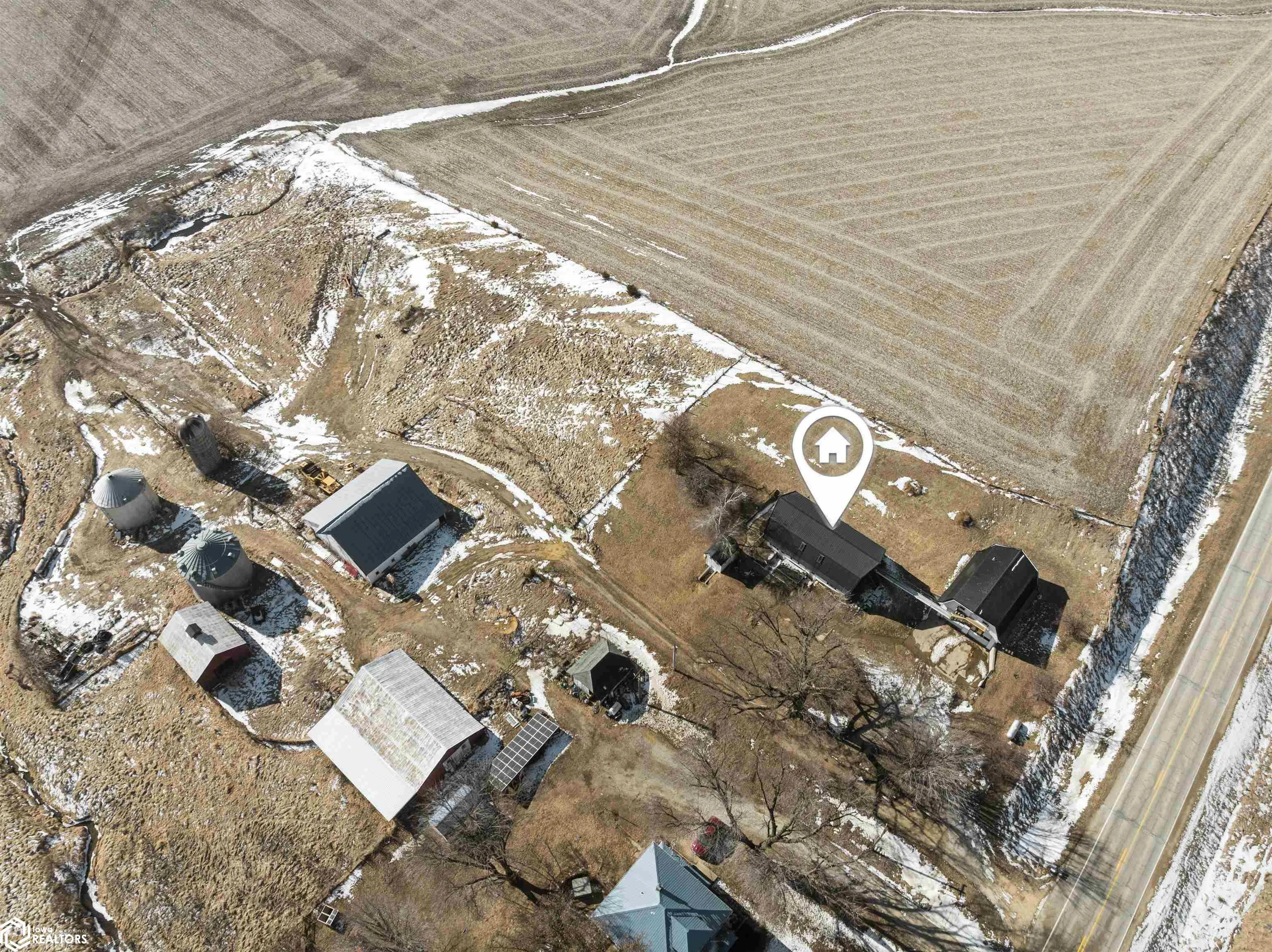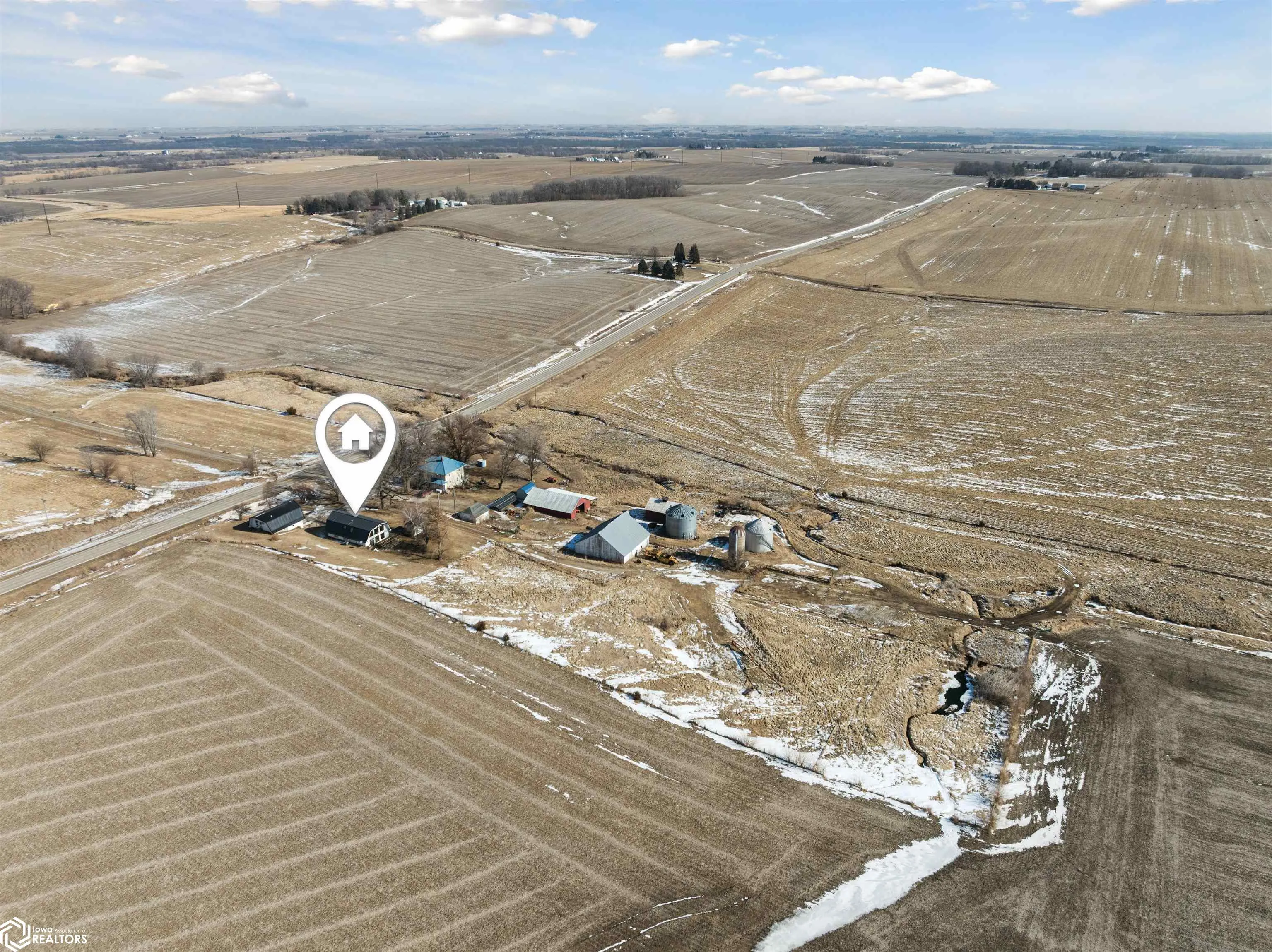 Dreaming of country views with room to spread out without giving up convenience? This unique acreage on approximately 4–5 acres along a hard-surfaced road just outside Marshalltown delivers the best of both worlds! Inside, you’ll find 3 bedrooms, including 2 on the main level plus a spacious loft suite with its own private bathroom. The living room is a showstopper, featuring southern-exposed picture windows that frame peaceful countryside views and flood the space with natural light. The property truly shines with its incredible garage and bonus living space. Above the oversized garage is a heated and cooled loft complete with a ¾ bath and kitchenette — ideal for guests, extended family, hobbies, or flexible-use space. An accessible entrance at the rear adds even more versatility. The loft space is connected to the main home’s upper level by a unique jet bridge. If you’ve been looking for privacy, views, and multi-purpose living space all in one property, this one is a rare find.