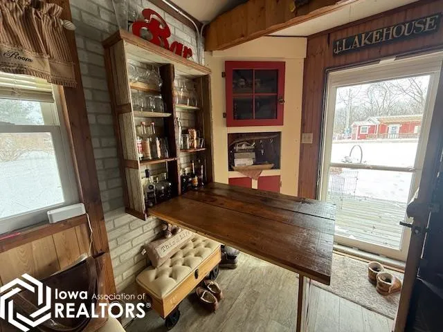 Double lot measuring 120′ x 150′ offers incredible space and flexibility! Whether you want room to expand, entertain, or pull in a camper, this property delivers. The additional concrete pad includes its own electric, water, and septic access—perfect for guests or extra living space. Tucked onto these two lots is a truly unique cabin full of character—from the charming Dutch front door to the rustic trough-style shower/tub, Murphy bed, built-in bar, and cozy loft. Updates include newer electric, plumbing, roof, mini split system, TV dish hookups, and low-maintenance composite decking. The spacious yard provides plenty of room for games, gatherings, or simply relaxing while watching the golf carts roll by. A 10×16 shed with new electric offers excellent storage or could easily serve as a man cave or she shed. A rare opportunity to own space, charm, and versatility all in one property!
