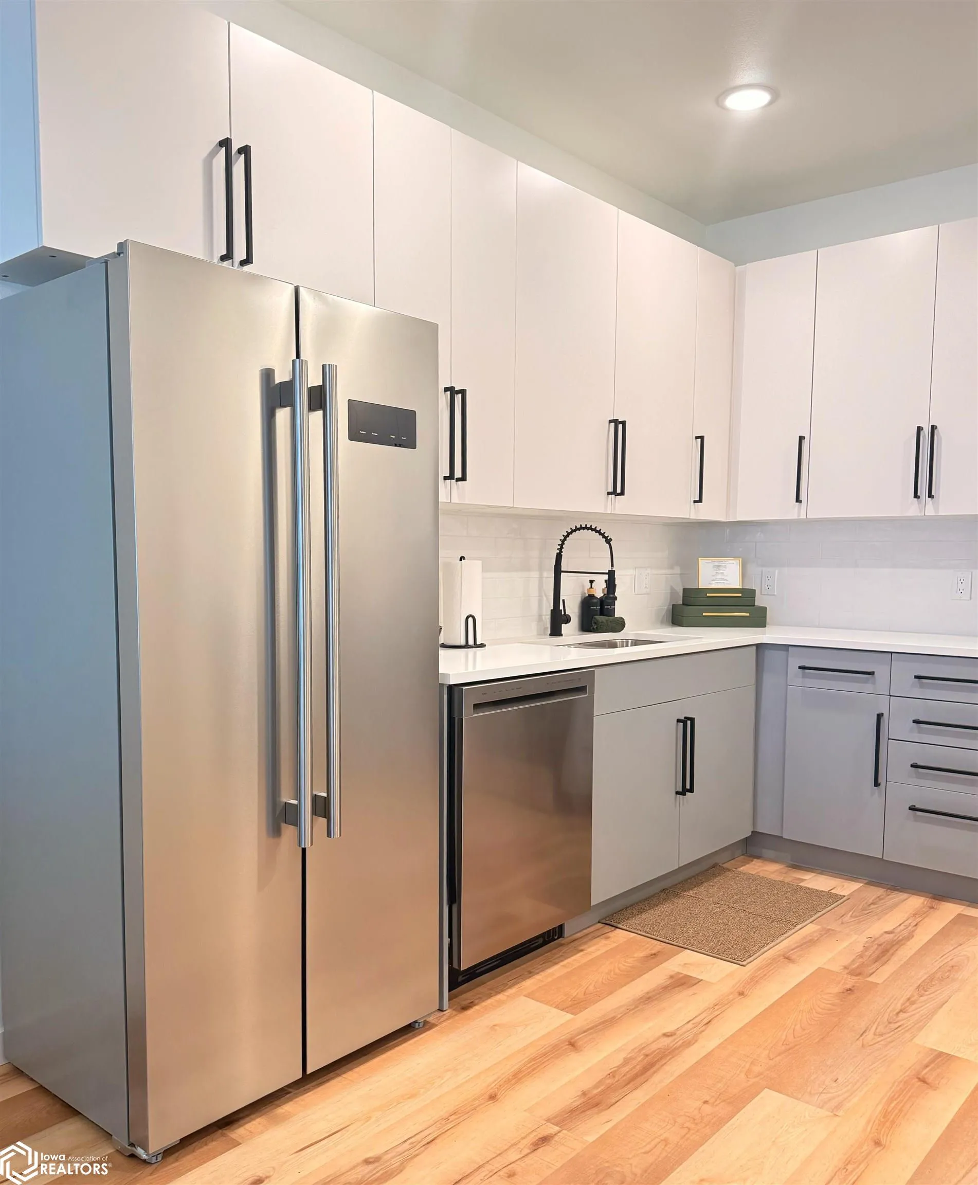 4 Townhomes Experience modern comfort, energy efficiency, and thoughtful design in these newly constructed two-bedroom townhomes in Sac City. Built with quality craftsmanship and durability in mind, these homes offer true single-level living with no stairs, making them ideal for accessibility, downsizing, or low-maintenance living. The open-concept layout creates a spacious flow between the kitchen, dining, and living areas, providing an inviting space for everyday living and entertaining. Large windows bring in natural light while modern finishes add style and comfort. Designed for accessibility and convenience, these homes feature all main living spaces on one level, allowing easy mobility throughout the home with no steps or stairways. The kitchen features custom cabinetry construction with full ¾” cabinet box construction, ¾” drawer boxes, and soft-close drawers and doors. Beautiful quartz countertops with a full modern backsplash provide durability and elegance, while lighting infrastructure is pre-wired for both under-cabinet and above-cabinet accent lighting. Durable commercial-grade luxury vinyl plank flooring runs throughout the main living areas, offering waterproof protection with a 12 mil wear layer designed for long-term performance. The bathroom includes a custom fully tiled walk-in shower with a sleek sliding barn-door style glass enclosure, providing both style and accessibility. Comfort is delivered through high-efficiency mini-split heating and cooling