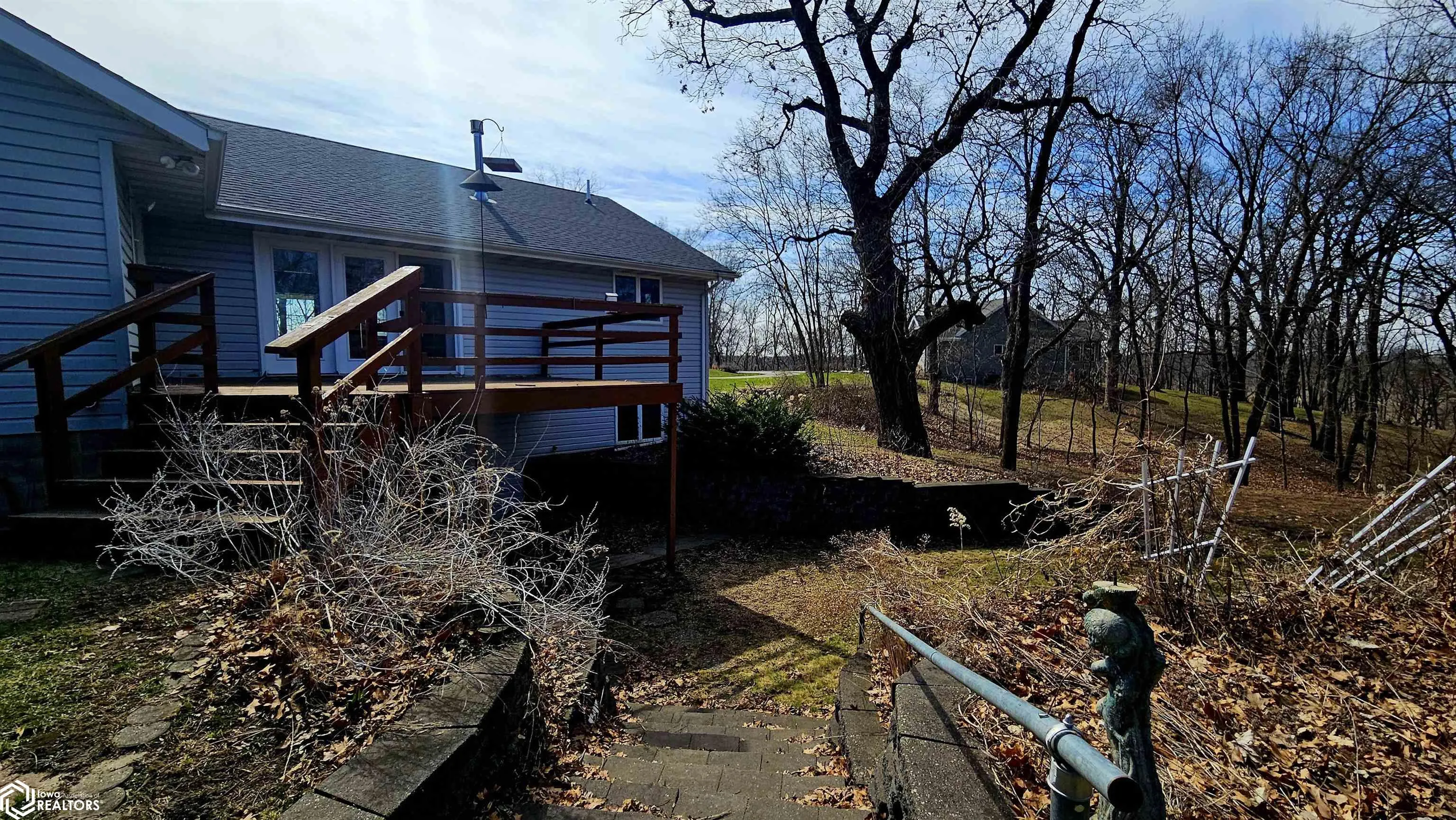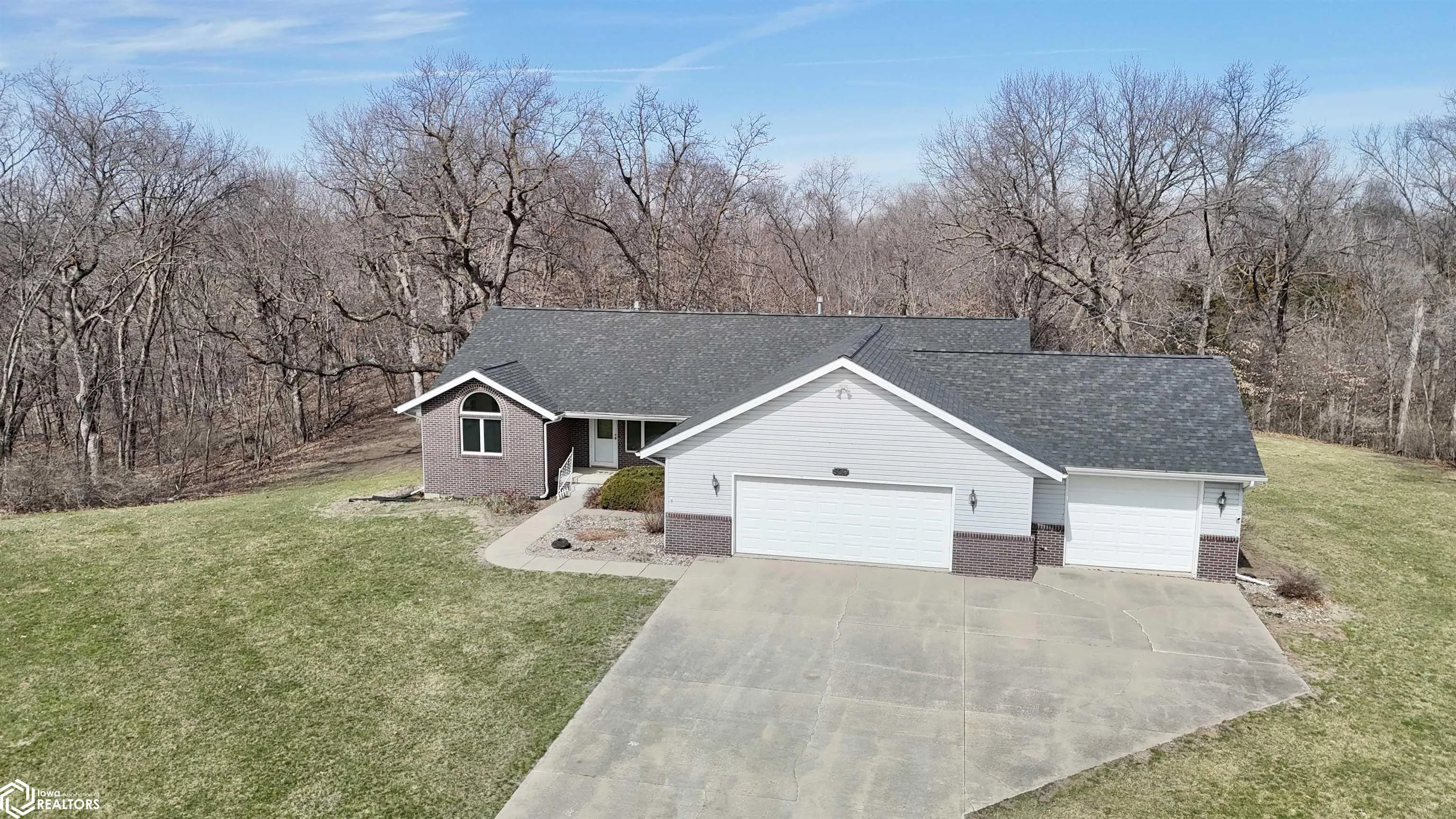 Secluded, in-town, picturesque living! Welcome to this rare opportunity on the edge of town. This ranch 4 bedroom, 3 bathroom home offers the perfect blend pf privacy and comfort, all set on a spacious 1 acre wooded lot. Tucked away in a peaceful setting near the golf course and Raccoon River, this property gives you that quiet, country feel while still being in town. Step inside to find a warm and inviting layout featuring an open dining area, large living room with a cozy fireplace, and private primary suite. The home has newer roof, a/c, and furnace, giving you peace of mind for years to come. Enjoy the outdoors from the many windows, or out on the wood deck overlooking you private backyard. The downstairs features a walk out basement, 4th bedroom plus an optional 5th non-conforming bedroom as well as a large wood-shop area. The oversized 3 car garage provides plenty of space for vehicles, storage or hobbies. You do not want to miss on this rare opportunity! Call today for a tour!