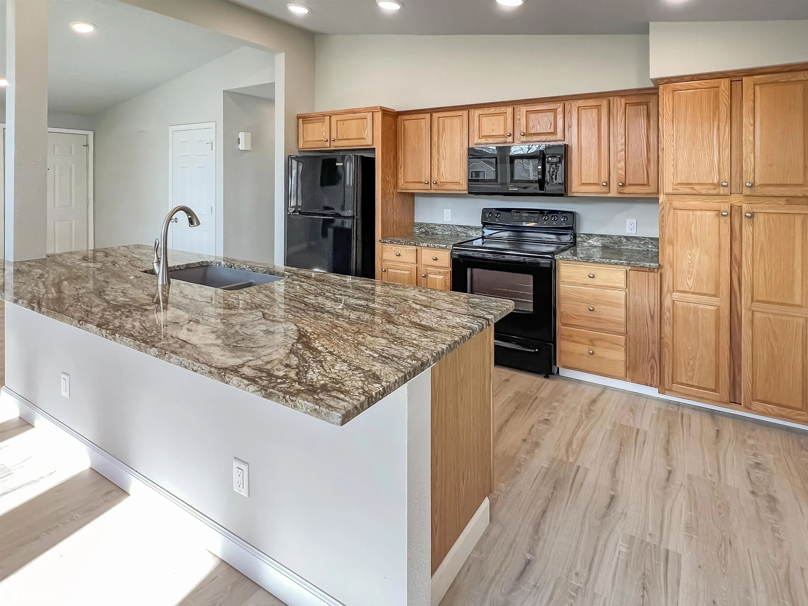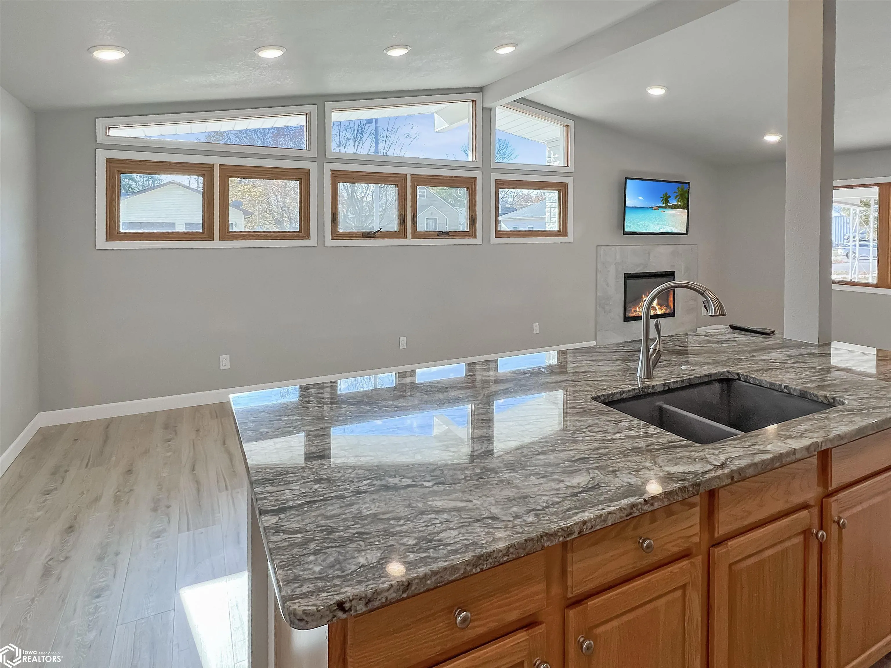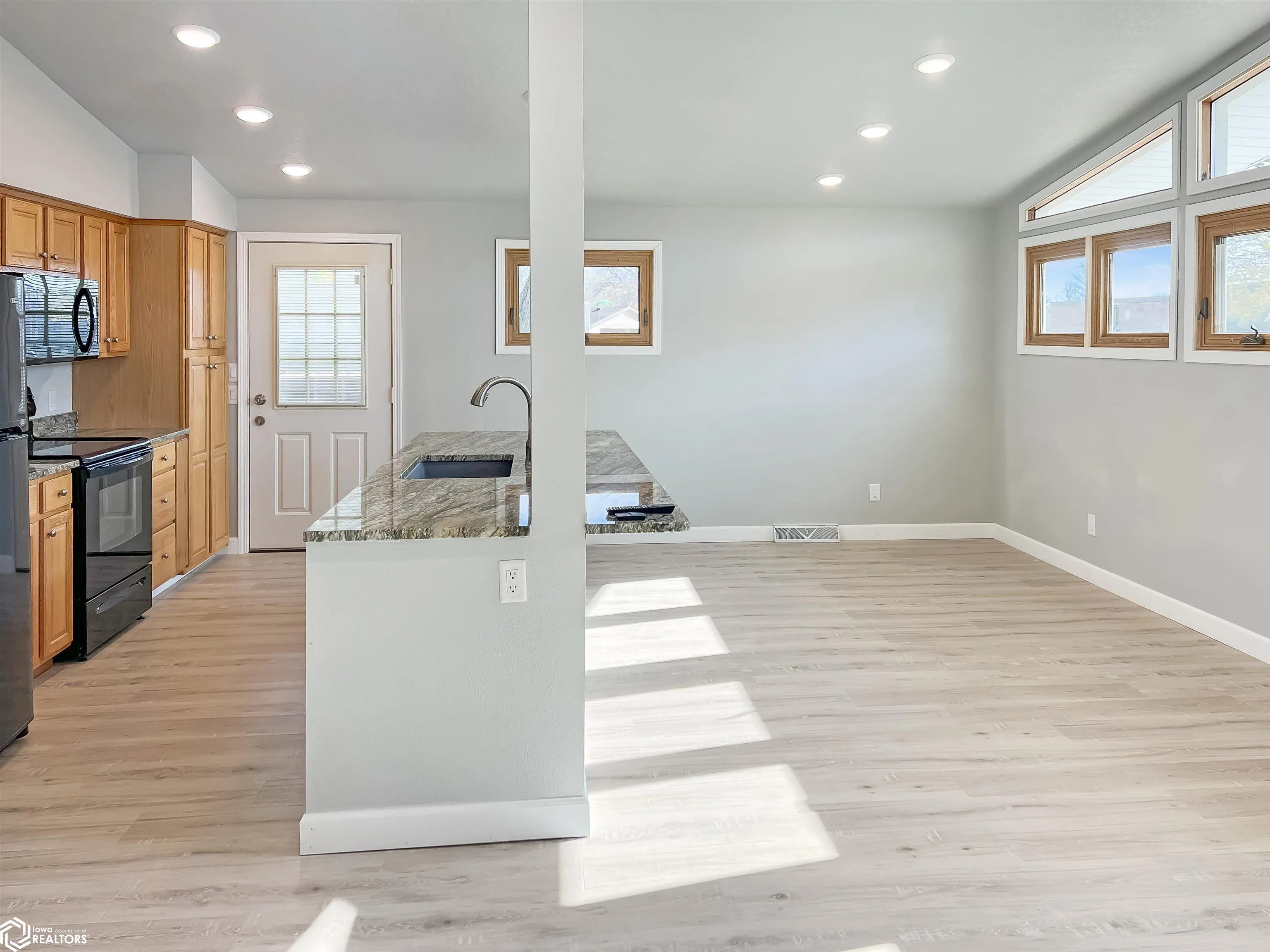 This open floor plan home’s interior has been transformed into a beautiful contemporary design with granite counter tops, tiled bathrooms, all new flooring, new doors and trim, all new recessed lighting, an electric fireplace and more! There are three spacious bedrooms and two baths (one of the bedrooms offers its own new 3/4 bath). Everything is conveniently located on one floor-open kitchen with dining area, living room, and laundry finish off the home. Without a basement, there’s no worry about dampness or flooding, making upkeep simpler and hassle free. There is a covered patio on the back of the home and 2 stall detached garage. Come see it today!