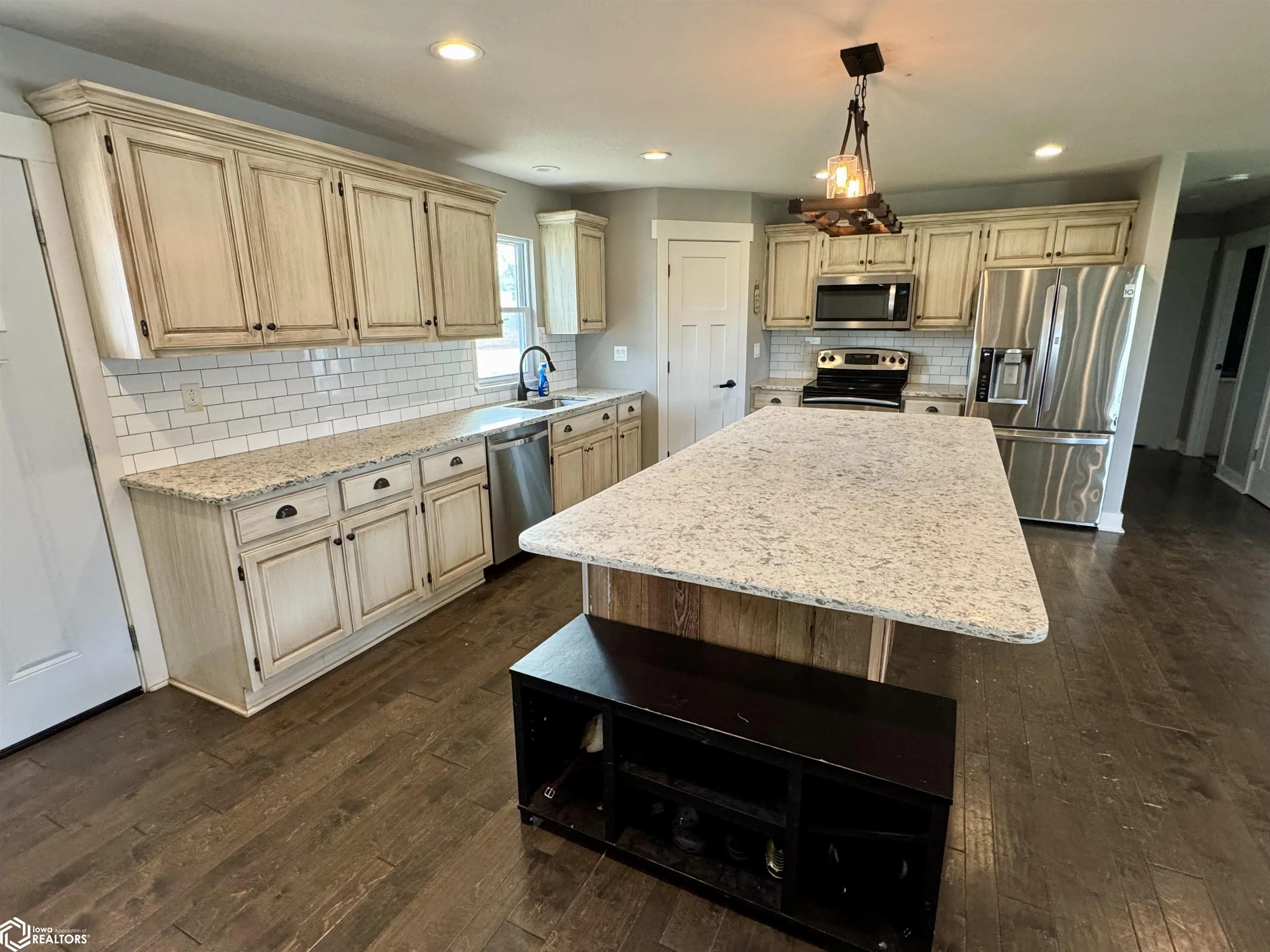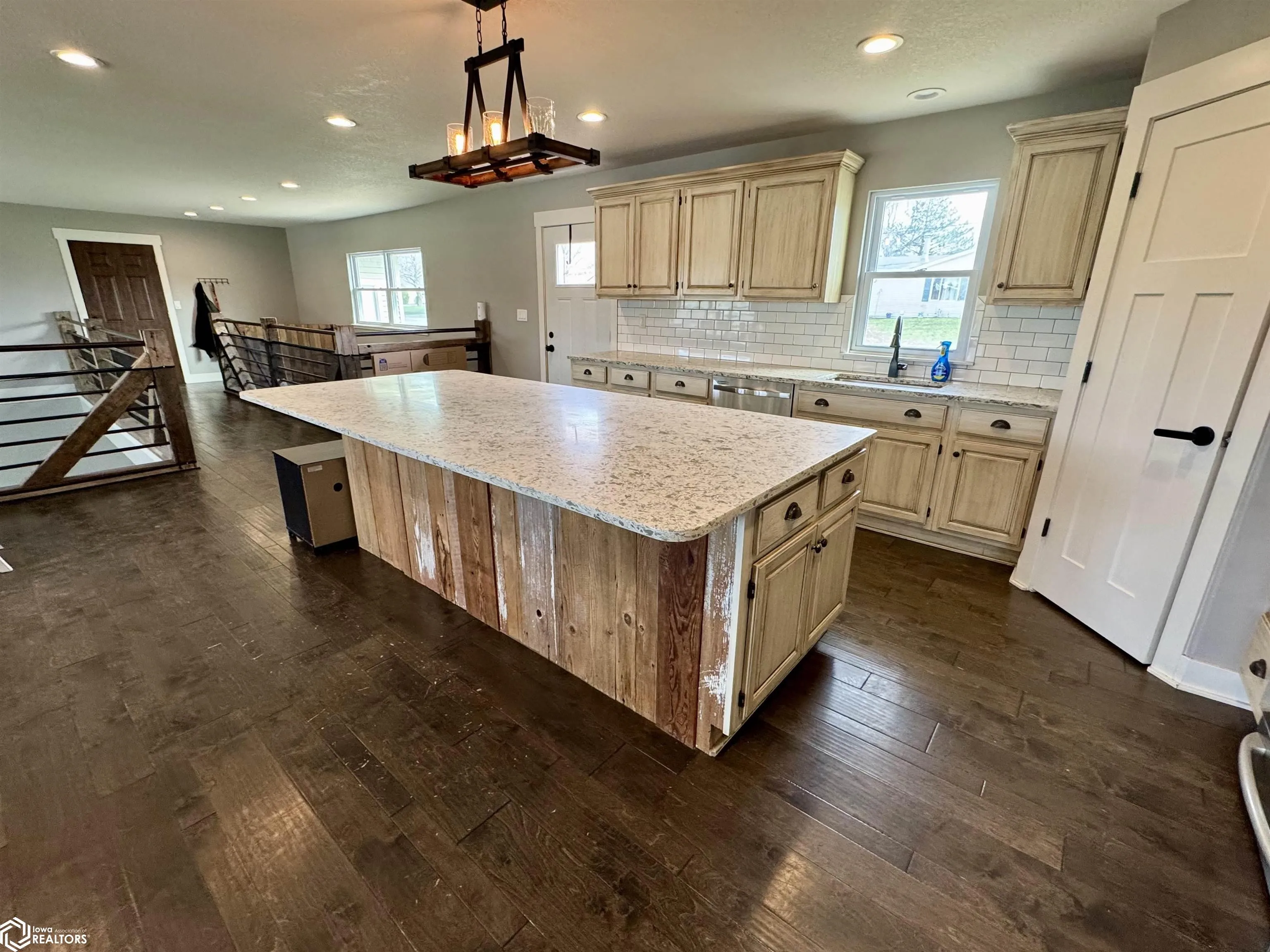 4 bed, 3 bath ranch with a heated, oversized 2-car garage and an open floor plan designed for easy living. The show-stopping kitchen features a massive island perfect for entertaining. A unique mix of modern and rustic finishes flows throughout, including a serene primary suite with soaking tub and double shower. Eye-catching open staircase and walkway overlook the spacious lower-level family room. Step outside to a stamped concrete patio and enjoy the expansive lot that includes over an acre of ground!